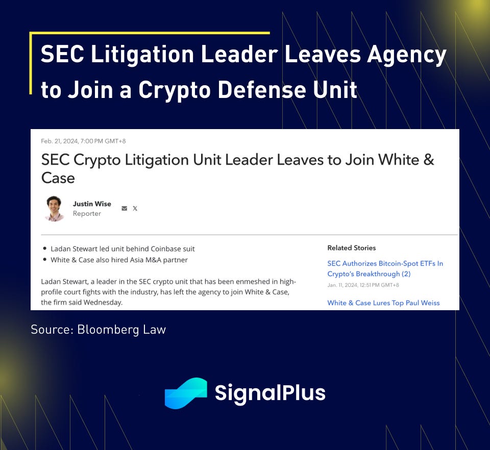 Finally, on crypto, as further signs that the mainstream tide is turning, Bloomberg reports that one of the lead SEC litigators against the likes of Coinbase and Ripple is leaving to join as a partner to a white collar defense group that specializes in crypto and cyber defense practices at White & Case, a 2600-person strong law firm.