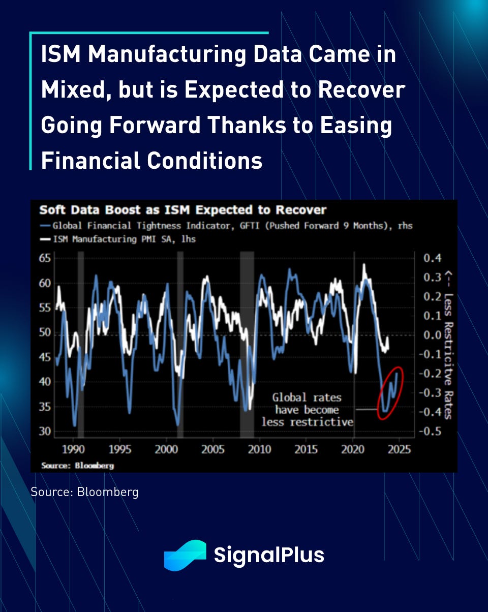 The cross-asset risk-off theme continued and arrived earlier than the market. The US session opened with mixed US ISM data which saw the index linger around 2-year lows (47.4) and reporting the 14th consecutive month of contraction. The sub-components saw a larger drop than expected in prices paid, offset by a strong employment sub-index and new export orders.