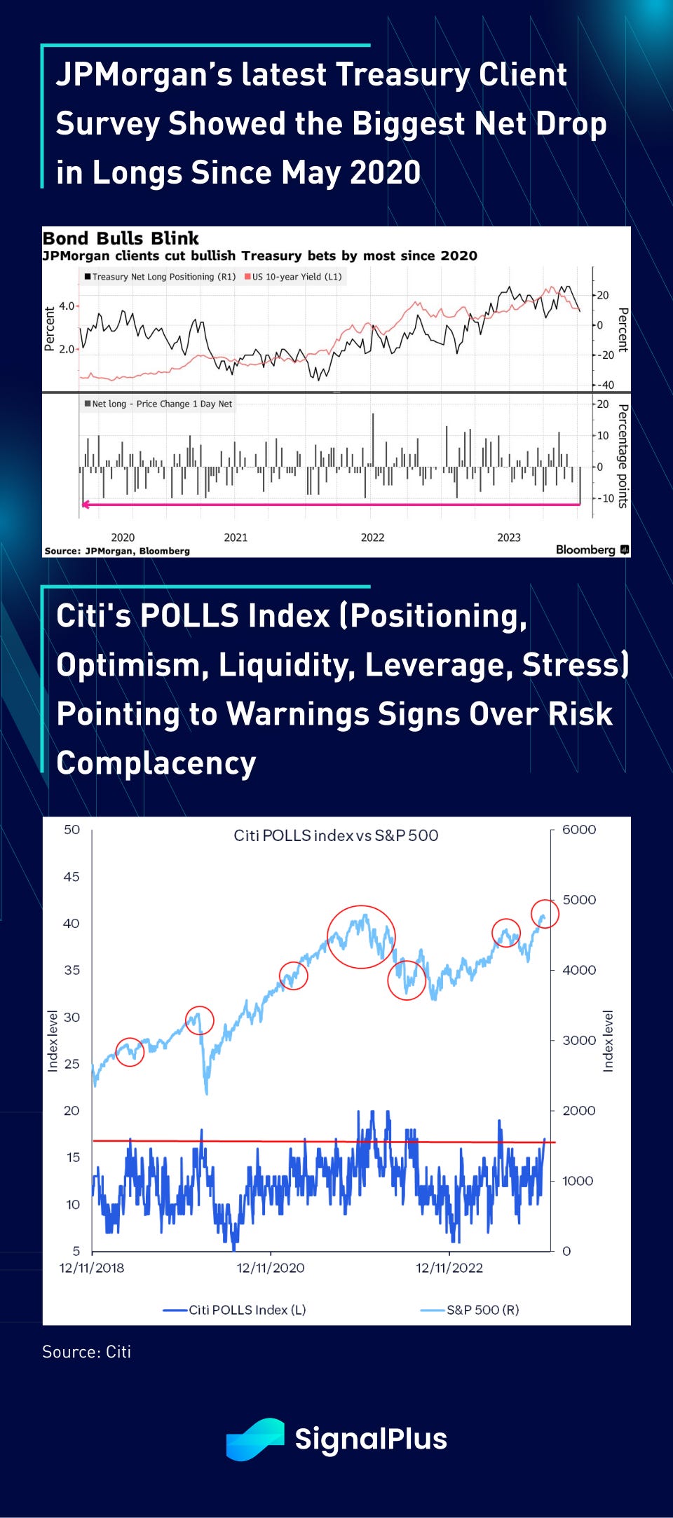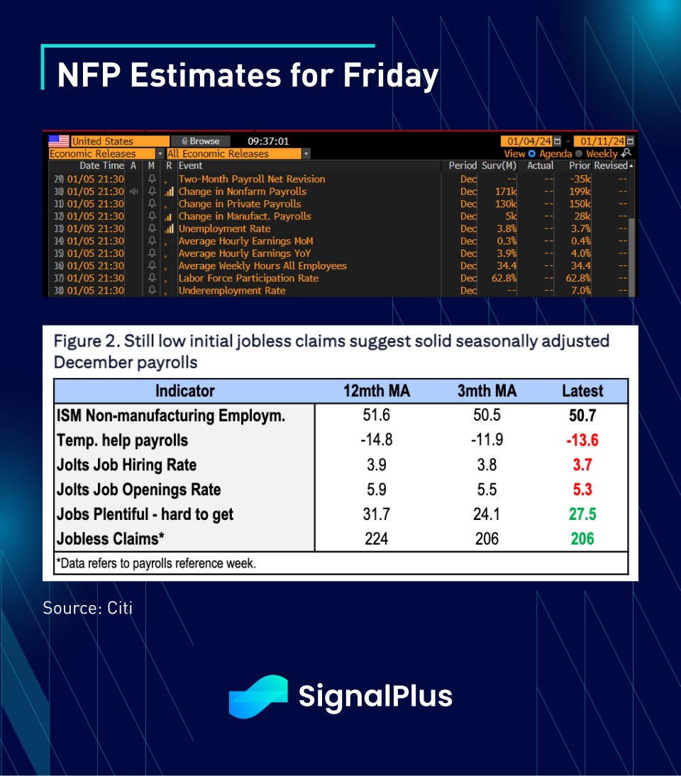 Weak equity markets (SPX/Nasdaq lost another -1% yesterday) also led to some risk-off related hedging in bonds, while a significant drop in fixed income longs from JPM’s latest Treasury client survey points to a cleaner position setup heading into NFP. On the other hand, equity longs remain off-side to start the new year with a number of sentiment surveys, such as Citi’s ‘POLLS’ index flashing potential warning signs with investor over-complacency to start the year.