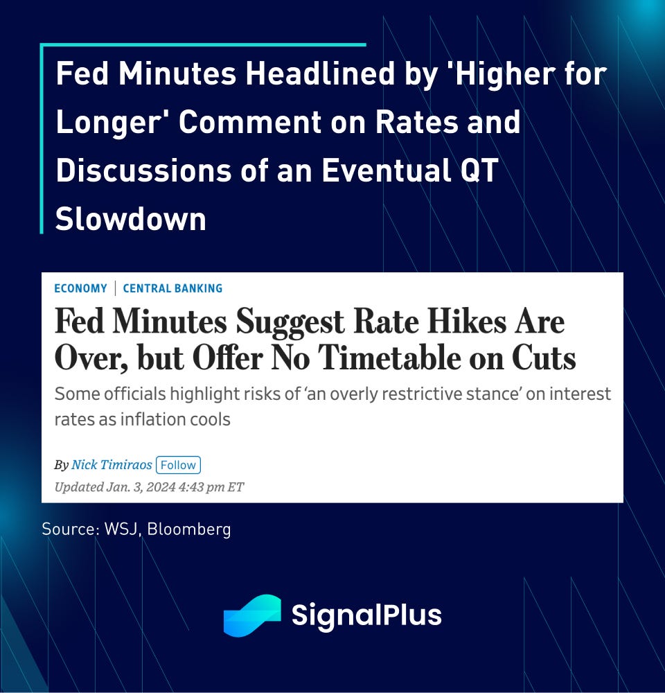 The Dec FOMC Minutes elicited more market excitement, where initial headlines suggested a reticence for any early rate cuts, citing that rates ‘could stay at peak longer than anticipated’. Other comments were more even-heeled, with further comments on concerns over easing financial conditions offset against the acknowledgment that inflation has peaked and that officials discussed the possibility of halting QT at some point.