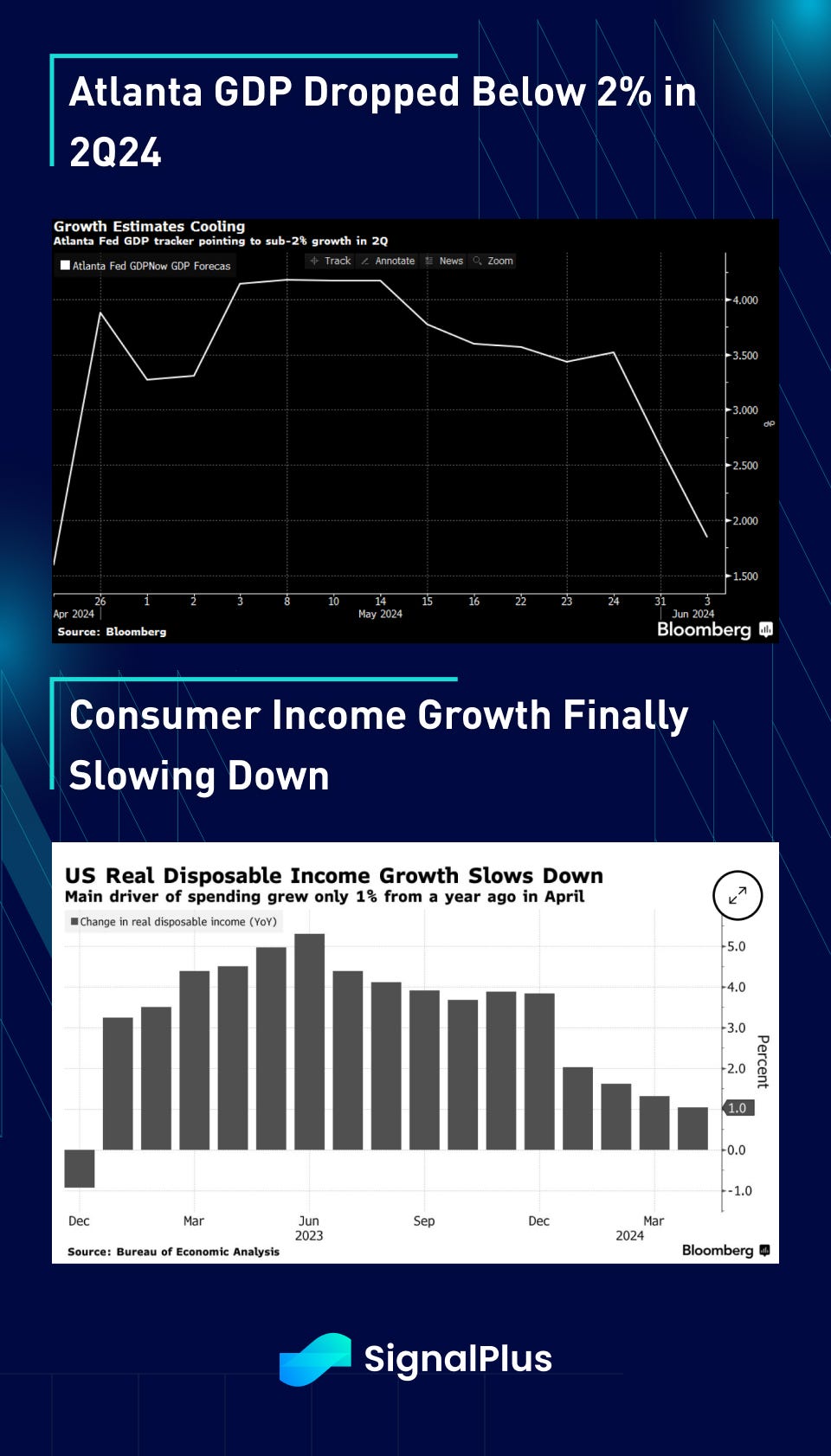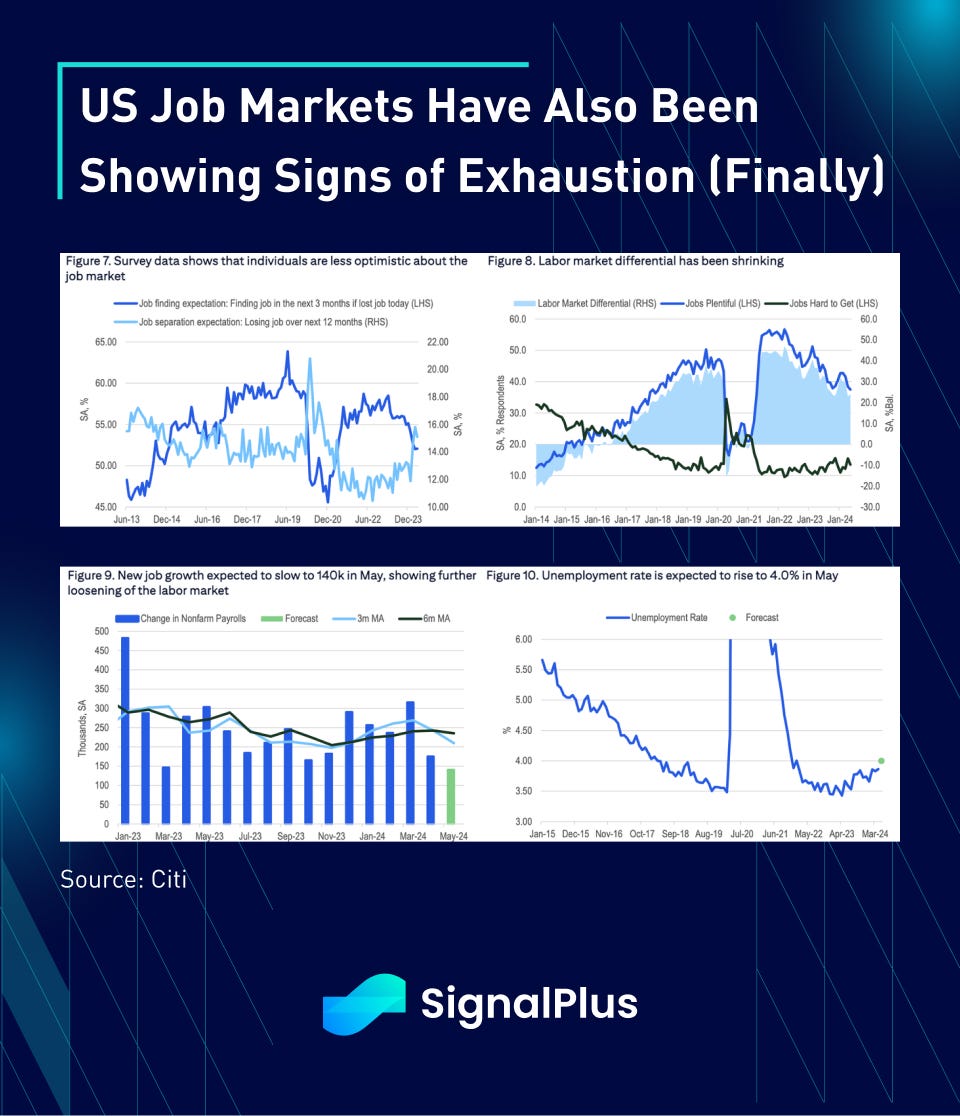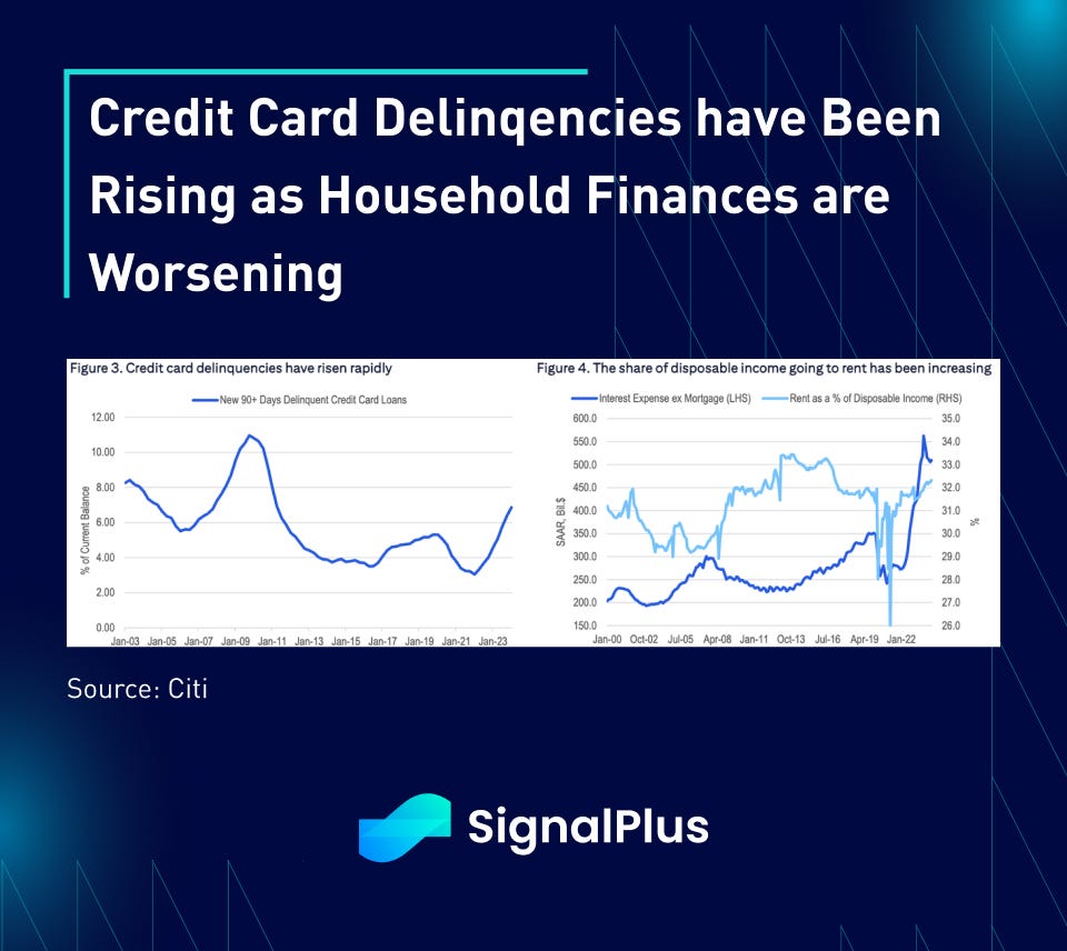 The slowdown in US data is now too pervasive to be ignored, with Atlanta Fed’s GDP now falling to sub 2%, and real disposable income growth slowing to sub 1%. Furthermore, rising credit card delinquencies, rent costs, and weakening labour markets are all signaling a weaker US economy into the election, with the Fed hand-tied with still high inflation and only a handful of meetings left before November.