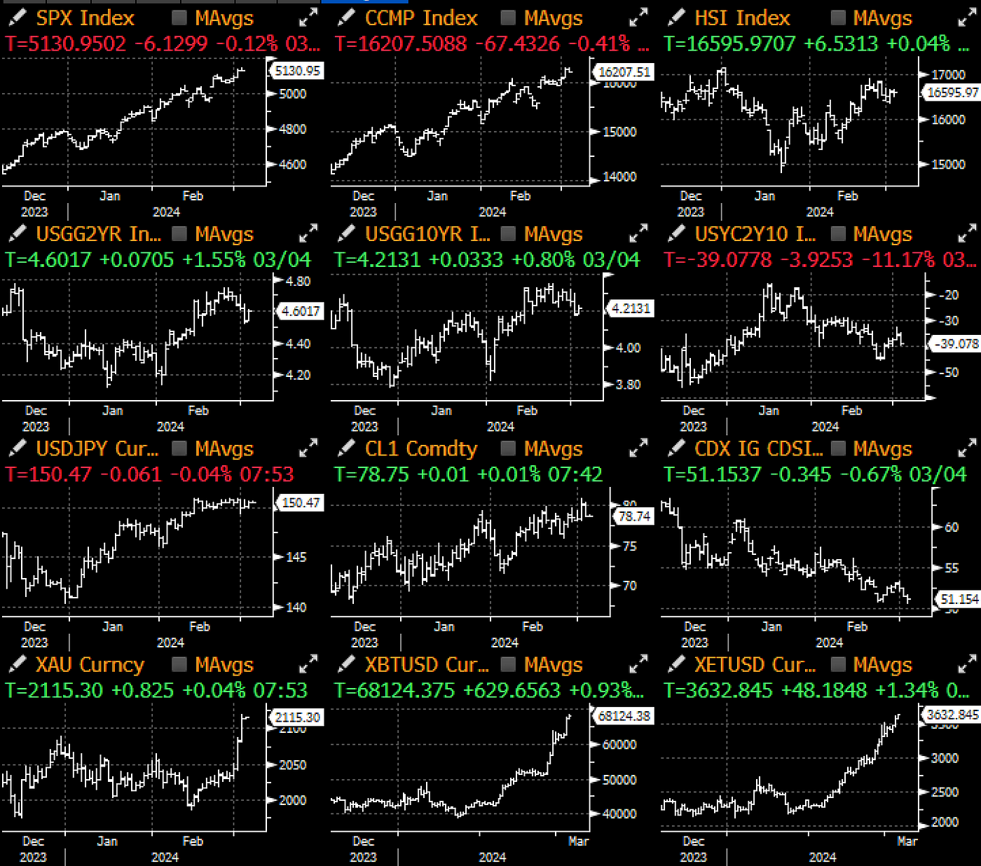 Range-bound day in TradFi with equities consolidating around the recent ranges but yields higher across the curve on the back of increased corporate supply. With Powell due to speak to Congress on Wed/Thu, issuers have been rushing to get their supply out of the way in the 1st two days of the week, with $30-$35bln looking to be priced in the 48 hour window. The only major headline of the day came from Atltan Fed Bostic, where he showed concern in his essay that a rate cut could unleash pent-up exuberance or new demand driven inflation. He further clarified in a Q&A that he expects “the first rate cut to be followed by a pause to assess…Hope asset runoff pace can continue as long as possible”.