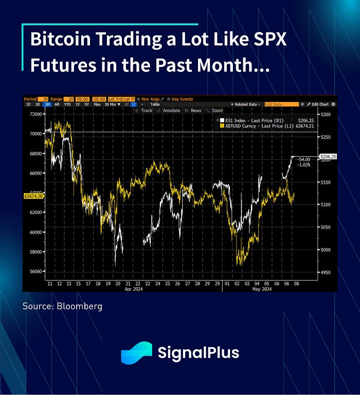 Not much to report in crypto land outside of more litigation action by the SEC, this time centered on Robinhood’s crypto unit. Otherwise, BTC prices continue to mirror the ebb and flow in equity sentiment, with the 1 month chart of SPX futures and BTC carrying an incredible resemblance. We expect crypto prices to remain in lock-step with equity prices absent a new catalyst (what happened to all the halving talks?), though remain skewed to the upside given the amount of levered long liquidations that have happened over the month of April. Good luck.