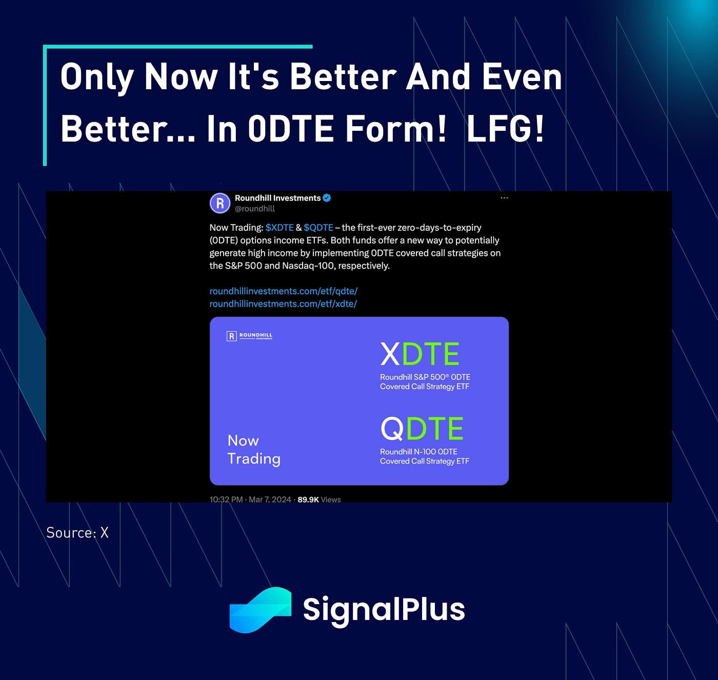 Never fear! After a few years of hiatus, Wall Street is back with similar ETF structures but in 0-DTE covered calls (same day options) as income generating strategies. Who wants to take bets on when this extends to out-right 0-DTE vol harvesting or in levered forms?