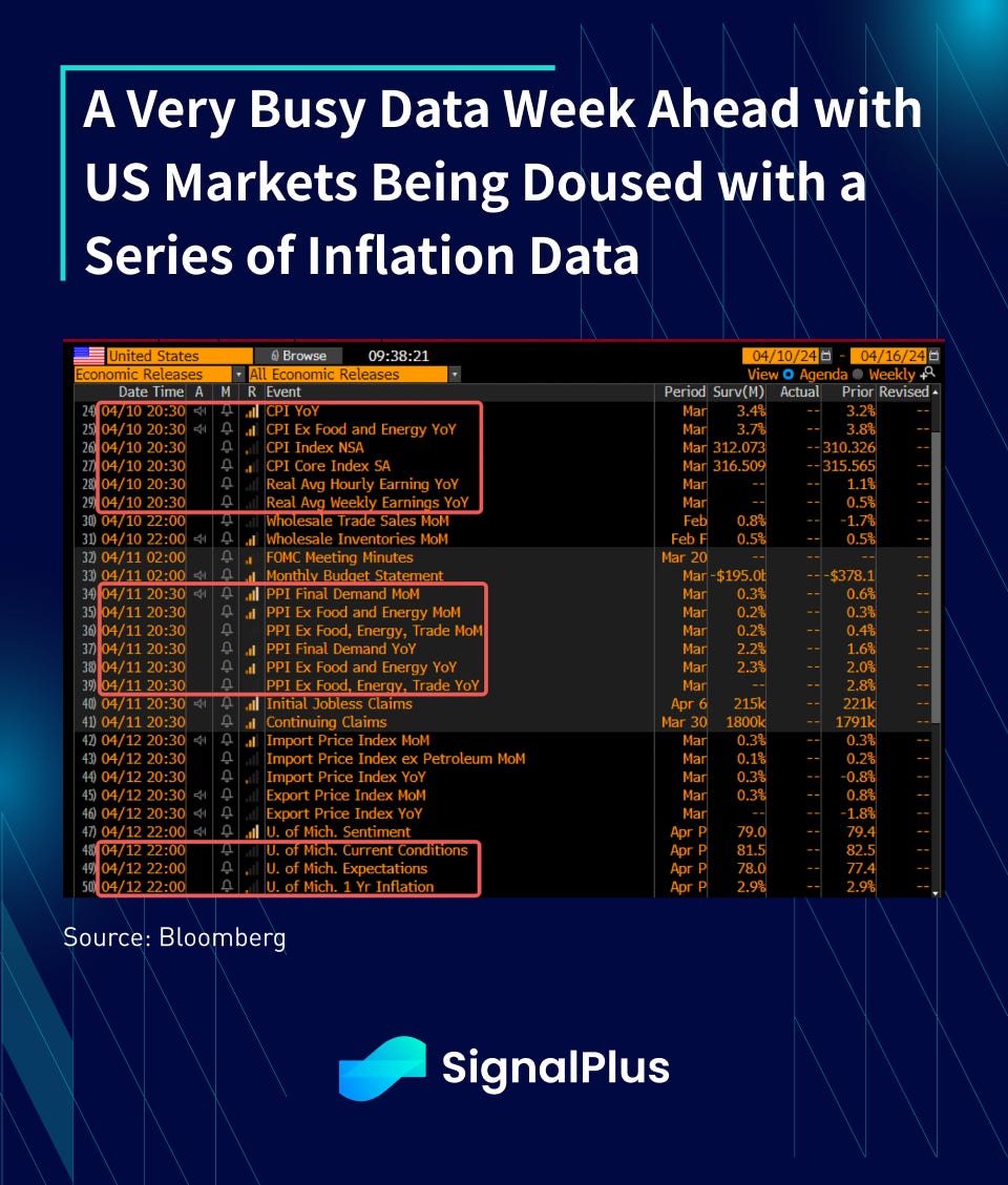 A quiet session yesterday gave markets a short break ahead of what is otherwise a very busy data week ahead. China will see the release of new yuan loans, aggregative financing, and M2 money supply, CPI, PPI, and trade balance. Europe will see the release of German industrial data, lending surveys, Sweden and Norway CPI, and of course the ECB meeting. UK will see the release of labour jobs data, monthly GDP, and industrial production. US data will see a large focus on prices with the release of NY Fed’s 1yr inflation expectations, CPI, PPI, UMich consumer confidence and inflation expectations on the docket. Central bank events will include rate decisions from Singapore, Sweden, New Zealand, Canada, Thailand, ECB, and Korea. We’ll end the week with the start of Q1 earnings reports out of JPM, Citi, Wells Fargo, State Street, and BlackRock. A very busy week indeed!