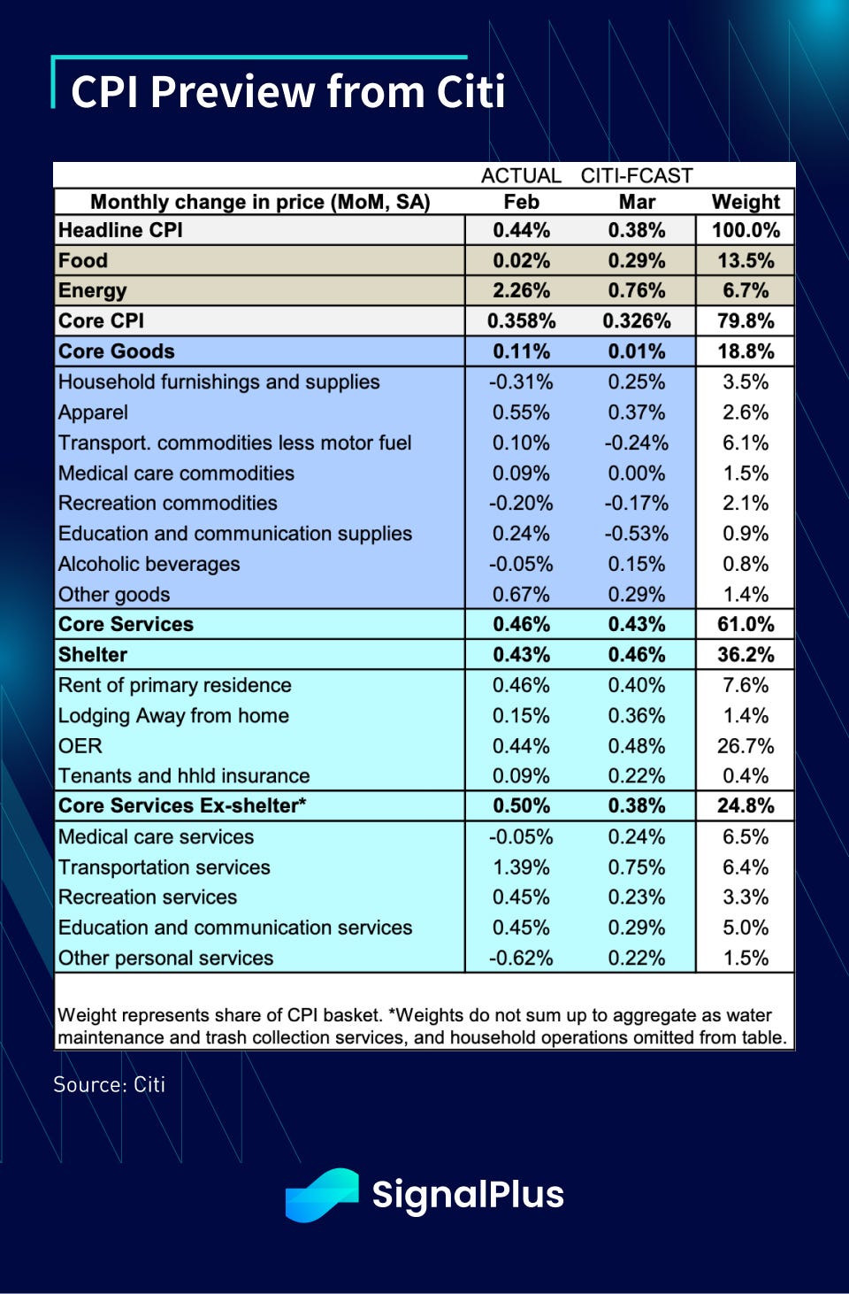 Over in the US, the big focus will be on Wednesday’s CPI where the street expects a slight drop in core CPI from 3.8% YoY back down to 3.7%, with markets likely better hedged for a hawkish surprise judging from the upward move in bond yields over the past few days. Options straddles are implying for the SPX to move around +/- 1% on Wednesday, with the index moving an average of +/- 0.7% on CPI days over the past 12 months. Keep in mind that option implieds have generally overpriced realized moves over the past 2 years, as investors have been paying up for tail protection given the immense focus on inflation over this cycle.