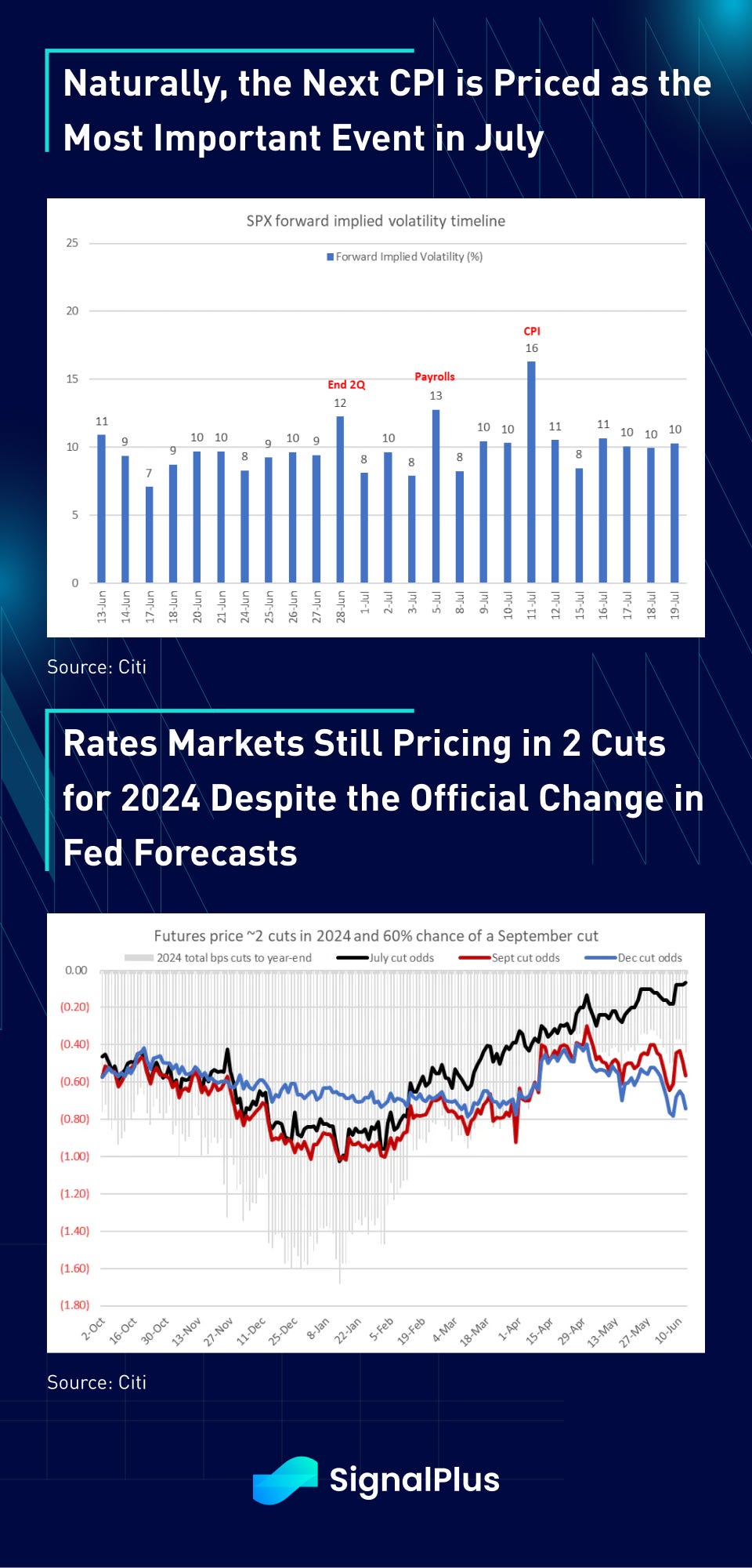 Naturally, Chairman Powell spent most of the press conference trying to wiggle the narrative back into dovish territory, explicitly trying to downplay the importance of these projections. Powell went as far as outright stating that “most” officials” did not include yesterday’s soft CPI into their forecasts, so that they are already effectively ‘stale’ to some degree. Talk about a stick save.