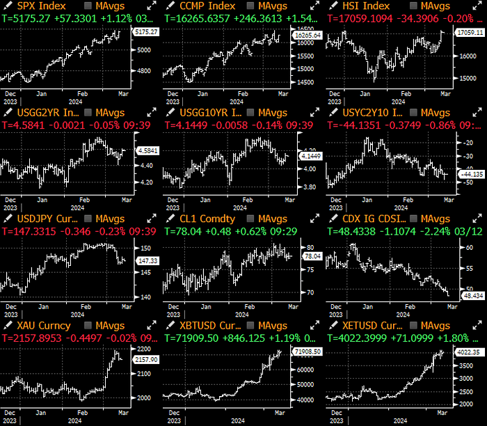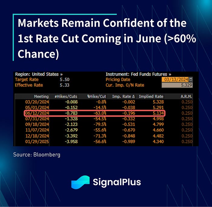 While one should be used to daily risk rallies by now (bears are an endangered species), today’s rally in stocks was an outlier and it was one of the few instances in recent history as it happened on a strong inflation print, at least since the current hiking cycle started. Perhaps this is yet another sign that investors are focusing on micro earnings ‘fundamentals’ over macro considerations. With that being said, despite the high CPI, bond markets are still confident that the 1st Fed cut is going to arrive in June (63%) and 3.4 cuts still priced in before the end of the year. As usual, the Fed is pretty boxed in on their next moves.