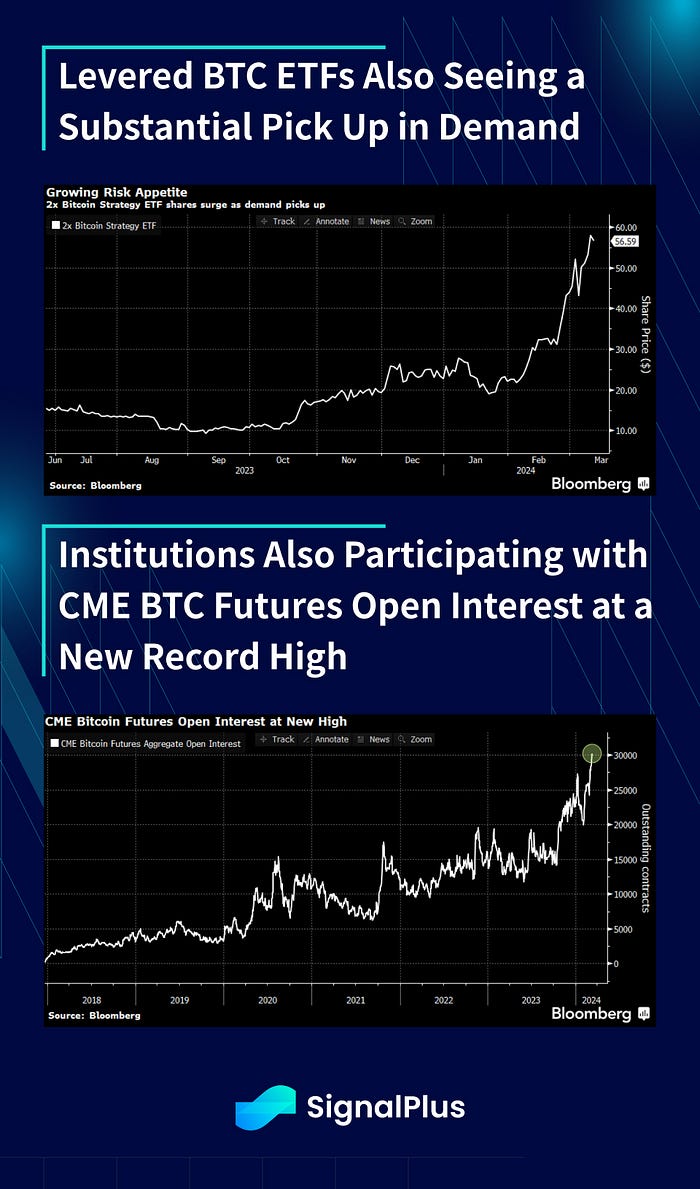 For those who can’t get enough, the infamous 2x levered ETFs have seen a surge in volume as well, and sees no signs of slowing down as every spike lower in Bitcoin has been bought. CME Bitcoin futures open-interest have also hit a new high, with institutional investors also joining in the fray. At this juncture, it’s not even clear to us is there’s any distinction between a levered tech/AI position and crypto, as they appear to be trading in lock-step during the US hours. But as long as everything keeps going up, who is asking questions anyway? Enjoy the ride and stay safe!