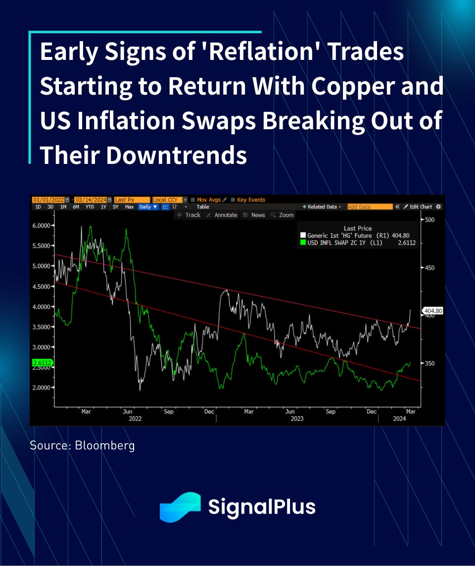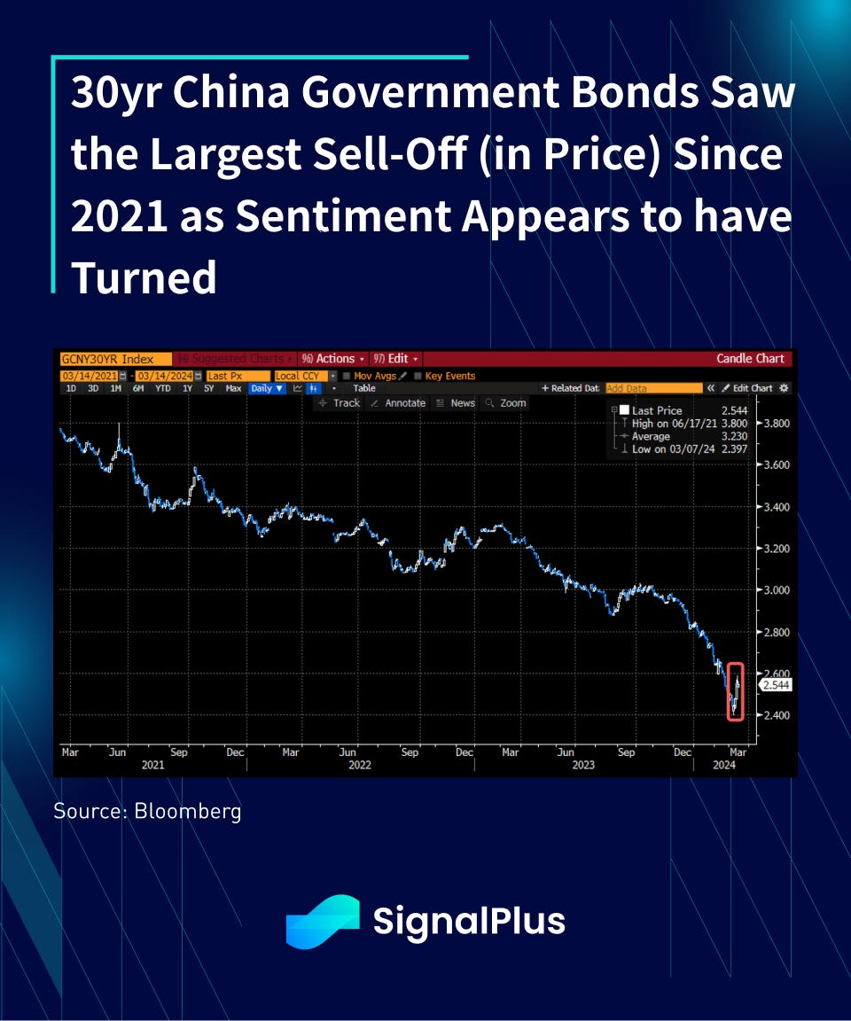 With Japan labour unions scoring record wage gains and the BoJ finally looking to exit from its negative rate policy, could China also be seeing an end to its recent disinflation pressures with the Shanghai Composite now positive for the year (+3%), and China 30yr bonds seeing the biggest sell off (prices lower, yields higher) since 2021, are we due for a synchronized reflation theme globally just as Central Banks have entrenches themselves in their easing biases?