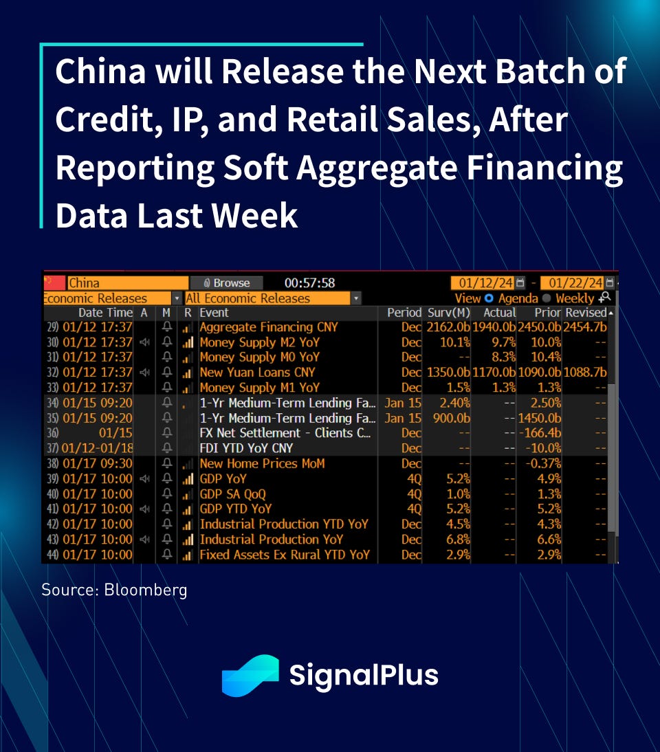 US stock and bond markets will be closed today for Martin Luther King Day, so focus might be on local EM markets post Taiwan’s presidential election results, and a string of Chinese credit, IP, and retail sales data due this week. Focus will also be on PBoC’s MLF monthly fixing, in particular after yet another set of very weak Chinese liquidity data on aggregate finance and new loans.