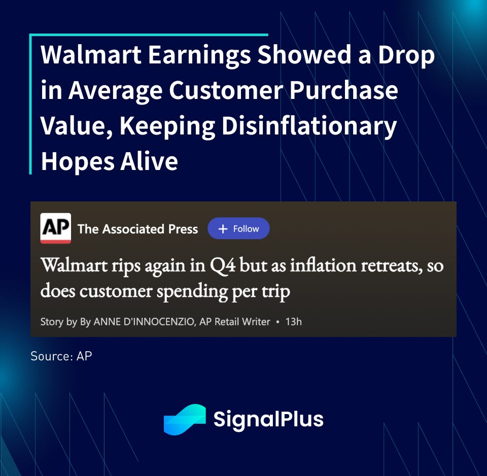 In the US, softer than expected CPI out of Japan and Canada, a dovish BoE’s Bailey (don’t need inflation to come back to target before they can cut rates), but a heavy $50bln of IG corporate supply pivoted the treasury curve steeper. Furthermore, Walmart’s earnings showed a -0.3% drop in average consumer spending ticket, despite a 4.3% rise in transactions, signaling a downshifting in dollar value purchases and giving markets hope that the disinflation narrative is still well and alive.
