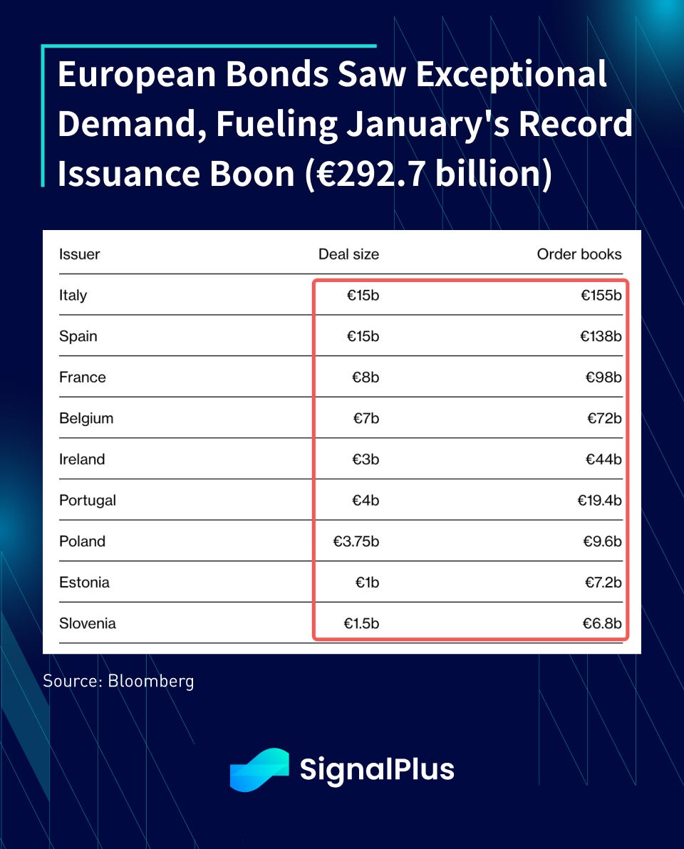Back in Europe and US, European bond markets notched a new January issuance record with around $320bln of new debt issuance, which were incredibly well received for the most part, with >80% of new deals seeing spread tightening (ie. higher price) post pricing.