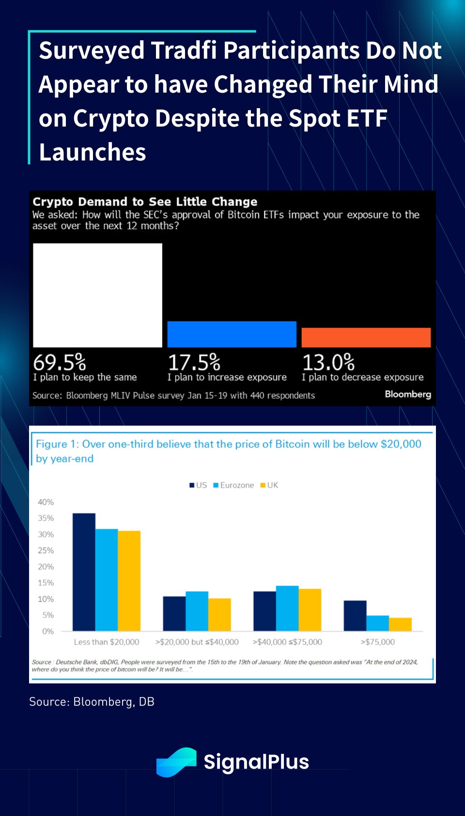 Furthermore, just as we thought Tradfi was starting to be on our side, a number of published surveys from Bloomberg and sell side seem to suggest little near term demand or change in sentiment from the wider public towards crypto in general, where ETFs can be summed up to increase the legitimacy, but not the use-case story for digital assets. 1/3 of those surveyed by a Deutsche Bank survey apparently still believes that BTC will be sub-20k by year-end (they should buy some cheap puts!!!!), definitely an interesting response versus expectations from native participants. The road ahead of us is still very long, it would seem!
