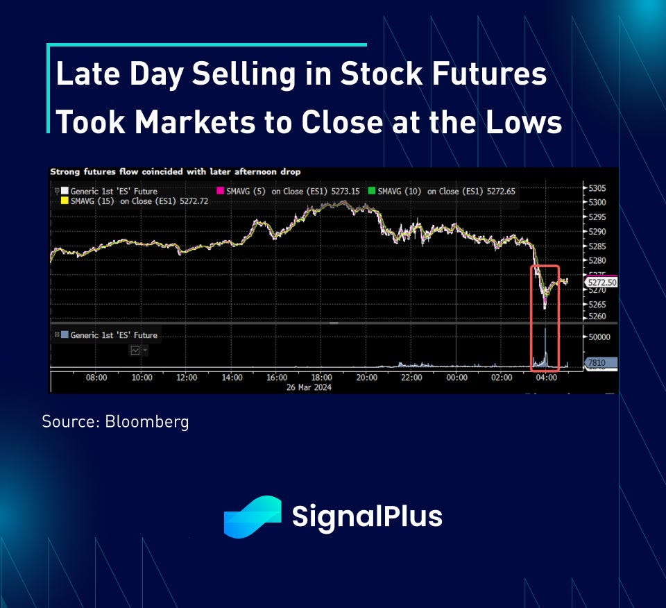 Another very quiet session ahead of the good Friday holidays, with global markets holding close to yesterday’s levels. US treasuries and FX treaded water for the most part, while US stocks were headed for the same fate before an aggressive late-day selling futures took prices to close at the lows. With March quarter end taking place on a rare Thursday, expect the next 2 days of action to be rebalancing driven, with no significant data nor economic release due on the docket for the rest of the week.