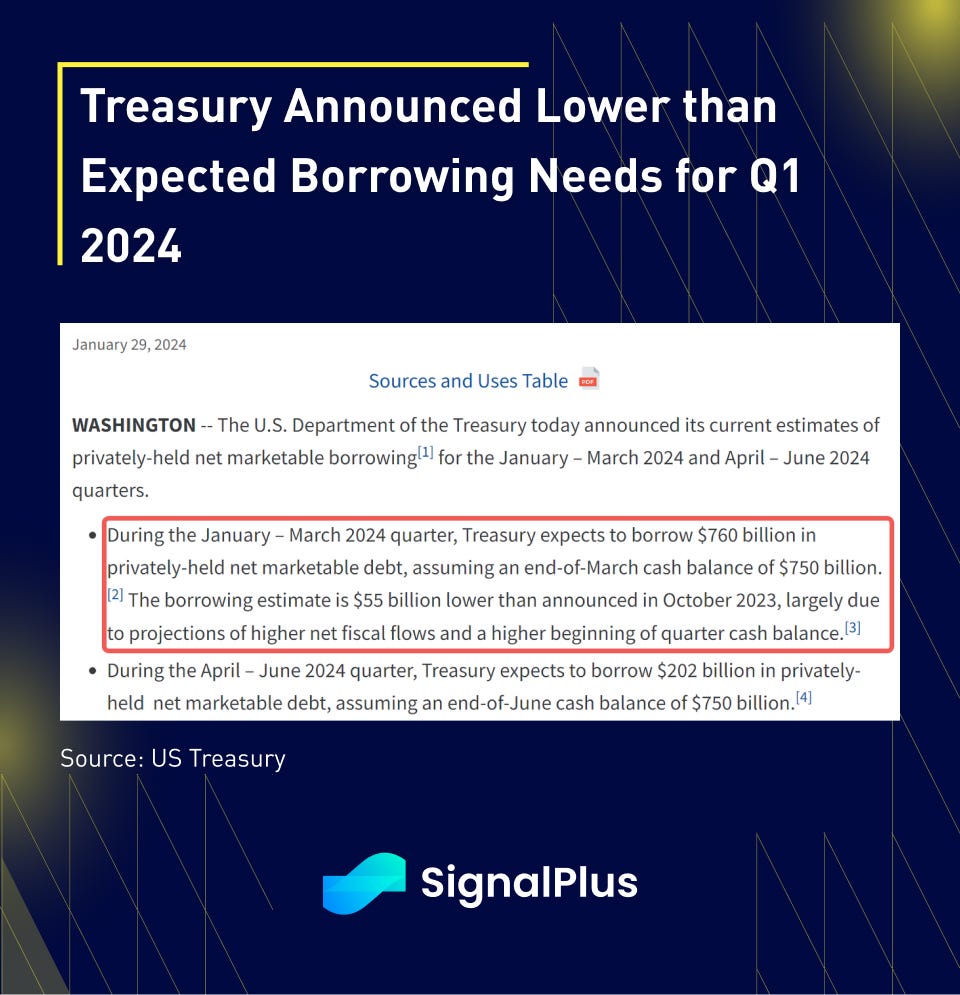 The lower borrowing needs were spurred by higher projected fiscal flows, and having more cash on hand than anticipated at the start of the new year.