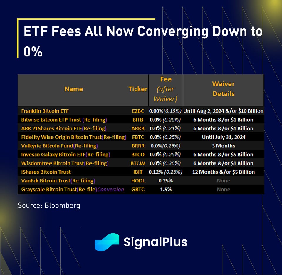 On the fees side, the price war continues with Invesco/Galaxy agreeing to cut their ETF fees from 39bp down to 25bp, inline with the rest of the providers and substantially below Greyscale’s 1.5% in fees. TradFi entries mean lower fees, lower spreads, and eventually lower alpha (increased competition)… Let’s just that the window doesn’t close too fast on us.