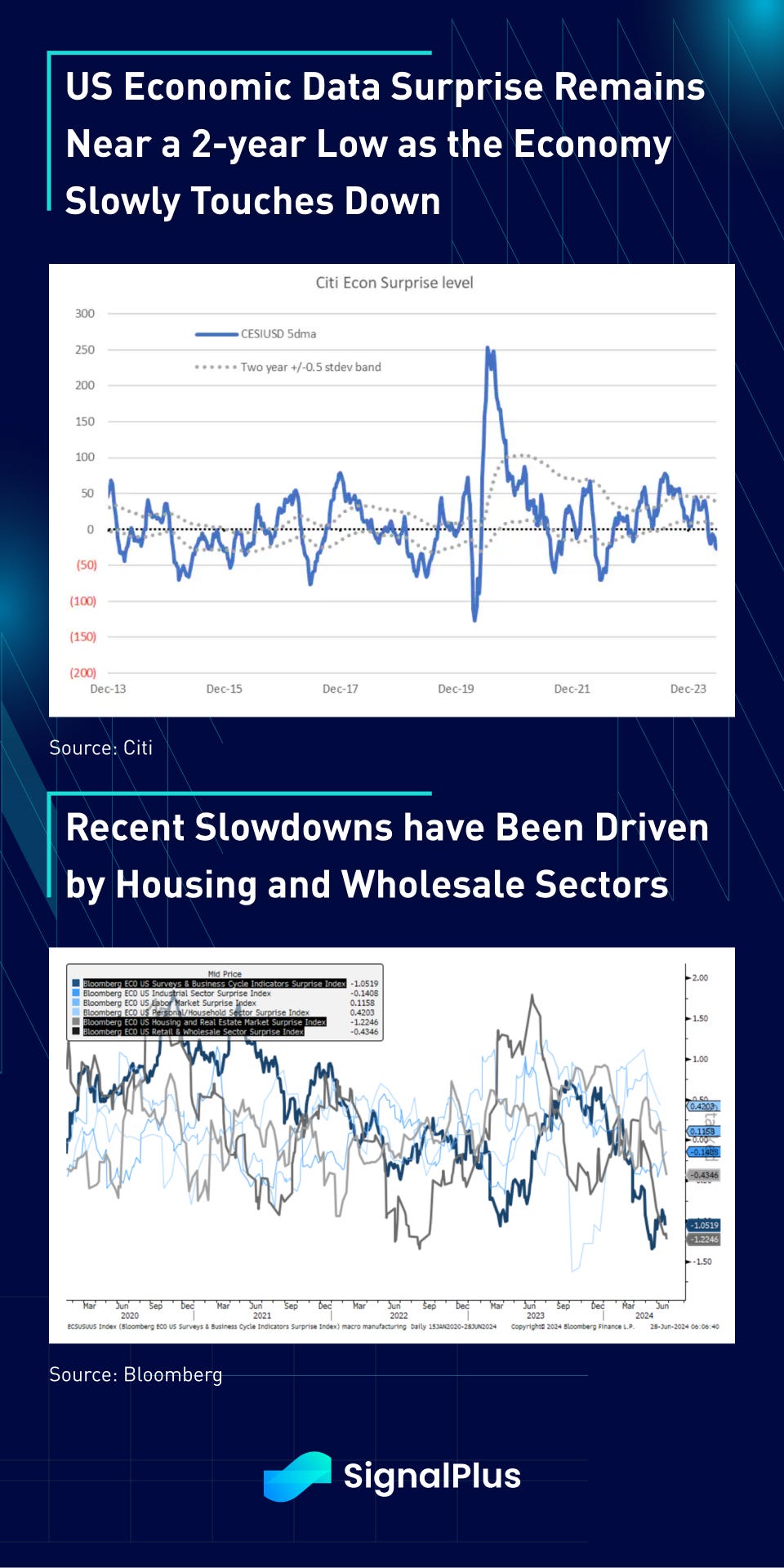 - Inflation pressures are slowing coming towards the Fed target in the right direction, but not sharp enough to justify rapid rate cuts in the short-run