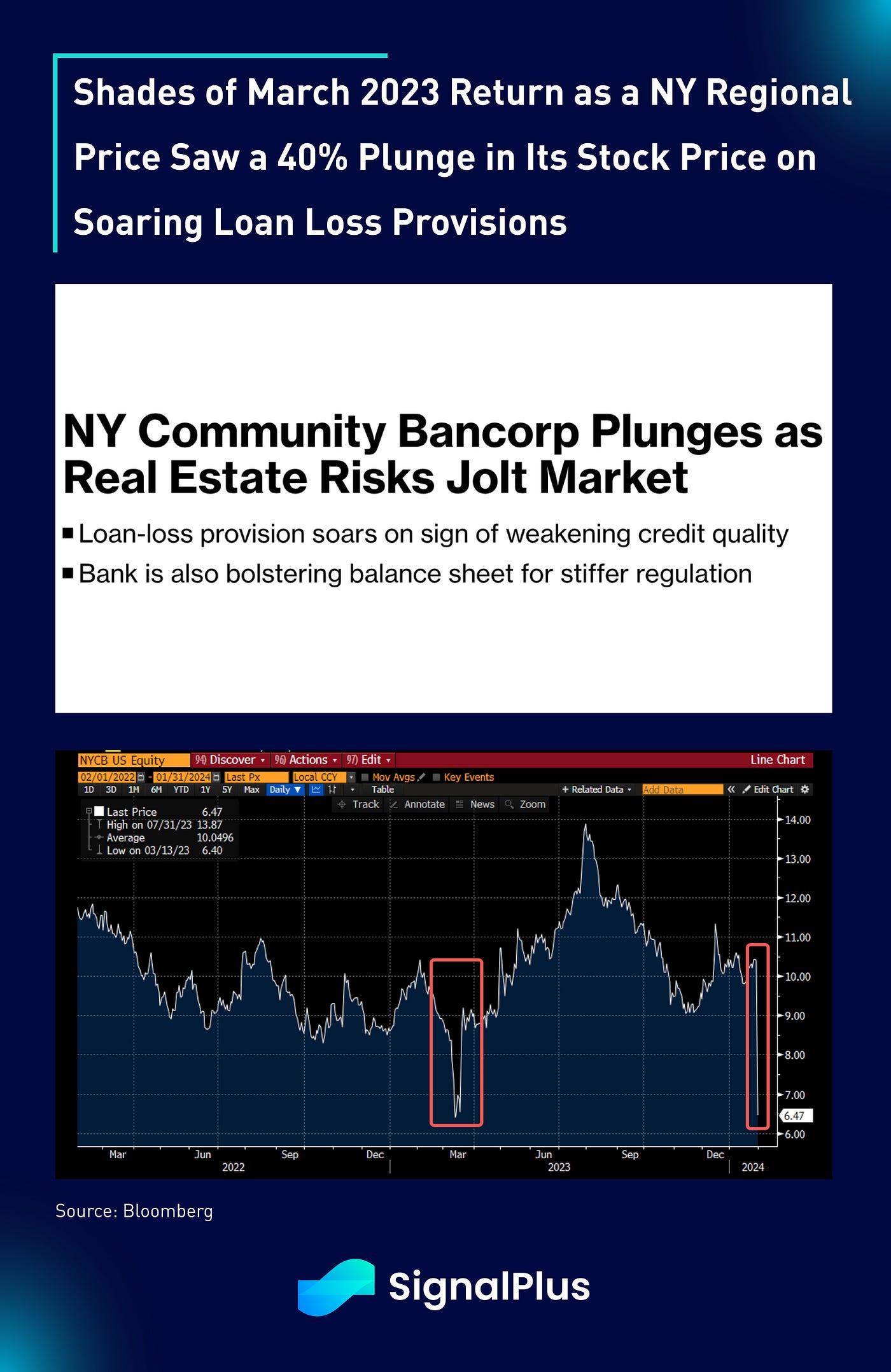The bank, which acquired a part of Signature Bank last year, stated that it ratcheted up its loan-loss reserves in anticipation of further weakness in commercial property markets, as 30 day+ delinquent loans jumped 48% higher in Q4 last year. Total charge-offs soared to $185mm in the quarter, which was more than its combined impairments over the past decade. Net loss for the bank arrived at -$252mm for Q4 versus a +$206mm gain as expected by analysts, and announced a ~70% cut in dividends payout as the firm sought to conserve cash.