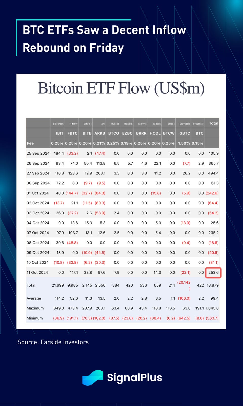 Prices did manage to jump this morning to above $64k as Chinese equities rebounded off the weekend disappointments, so risk sentiment will likely remain in ‘buy everything’ mode until further notice. A strong BTC inflow on Friday might be a positive sign of things to come as we head into the final weeks of the election campaign, but patience will likely be required before we can make new ATHs anytime soon.