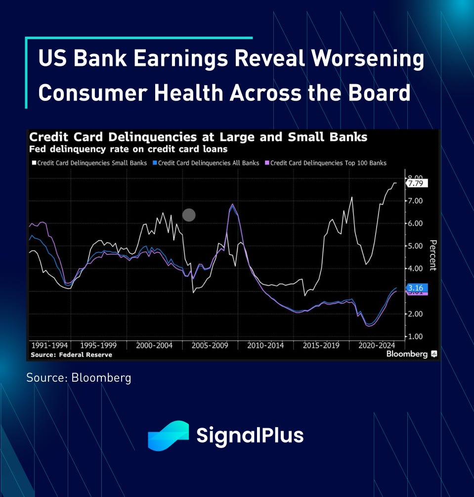 Speaking of the slowing economy, earnings from the largest US banks confirmed a weakening consumer, with most banks setting aside more cash to cover delinquent customer loans, with Citigroup/Wells Fargo/JPM all increasing loan writeoffs as consumers have spent through most of their pandemic savings. Credit card delinquencies have risen to the highest level in 30 years for small banks, and the highest in 10 years across the entire banking sector.