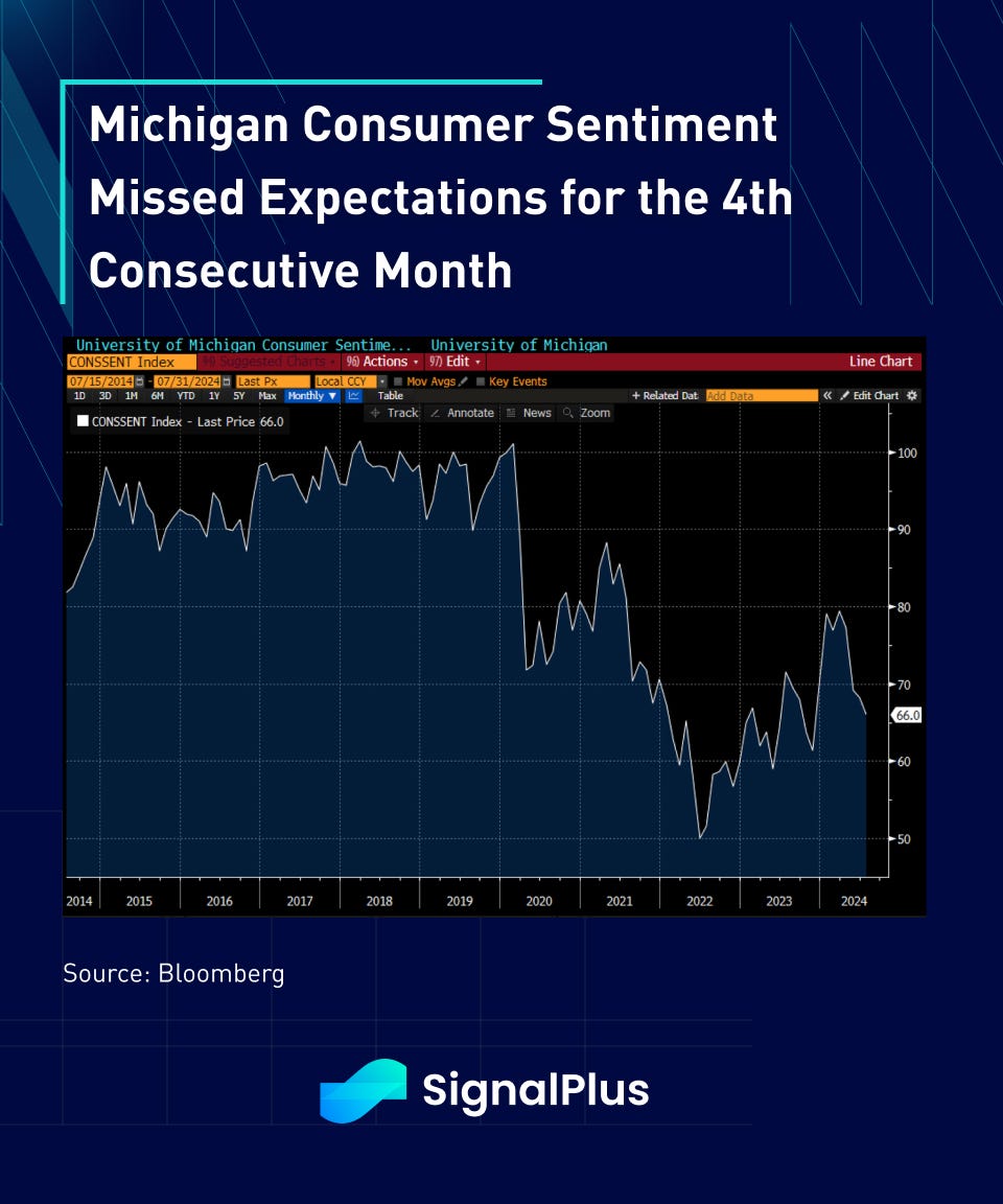 Similarly, Friday’s Michigan consumer sentiment missed expectations for the 4th consecutive month, with respondents citing weakening labour markets against persistent high prices keeping a lid on sentiment. The official survey noted: “Almost half of consumers spontaneously expressed complaints that high prices are eroding their living standards, matching the all-time high reached two years ago”.