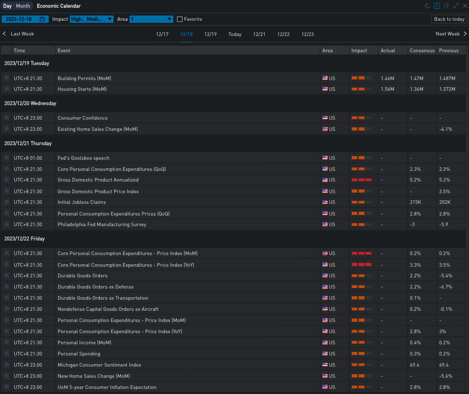 Yesterday (December 19th), Richmond Fed President Barkin, who will have a voting right in next year’s FOMC, made a statement indicating that the Federal Reserve has made good progress in reducing inflation but wants to see more consistent data before starting to lower interest rates; Chicago Fed President Charles Evans also spoke, stating that the Fed has not committed to cutting rates and noted that the market’s current reaction is somewhat premature. Despite Fed officials pouring cold water on expectations for rate cuts, Treasury yields continued to fall, with the ten-year yield breaking below the 3.9% threshold to report at 3.891%, and the two-year yield at 4.386%. The three major U.S. stock indices all closed up, with the Dow Jones index setting a new closing high, ending at 37,557.92 points (+0.68%), and the S&P 500 and Nasdaq composite rising 0.59% and 0.66%, respectively. In terms of the Japanese yen, the Bank of Japan decided to maintain its benchmark interest rate and YCC unchanged, and Governor Haruhiko Kuroda stated at a press conference that the possibility of a rate hike at the next meeting is very low, and it is currently difficult to determine a plan to exit the negative interest rate policy.