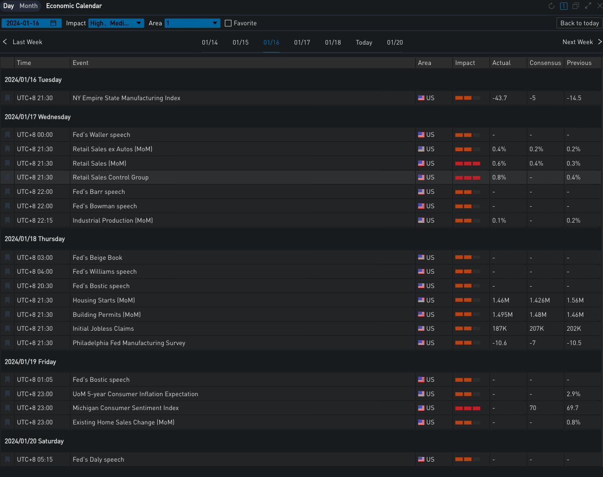 Yesterday (January 18), Federal Reserve Bank of Atlanta President Raphael Bostic made a statement to the market, expressing that if inflation progress slows, it would be better to maintain higher interest rates for a longer period. However, if the inflation rate drops faster, the Fed might consider an earlier rate cut. Following this, the U.S. announced that the number of initial jobless claims for the week was 187,000 (lower than the expected 207,000), marking a new low since the end of September last year. This highlights the still robust state of the labor market and once again dampened market expectations for a Fed rate cut. U.S. Treasury yields rose in response, with the two-year and ten-year yields currently at 4.346% and 4.150%, respectively. The three major U.S. stock indices opened and closed higher, with the Dow Jones, S&P, and NASDAQ rising by 0.54%, 0.88%, and 1.35%, respectively.