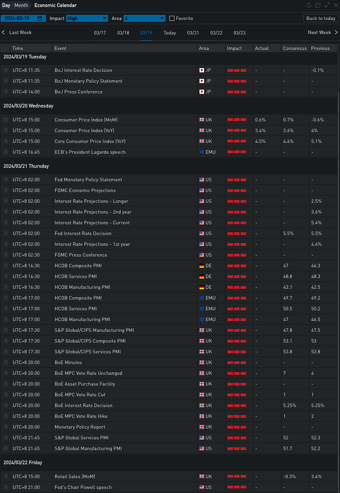 Yesterday (March 19), the Bank of Japan raised the benchmark interest rate from -0.1% to 0–0.1%, marking its first rate hike in 17 years and officially ending an 8-year era of negative interest rates. In the United States, on the eve of the FOMC meeting, Treasury yields declined, with the two-year/ten-year currently at 4.677%/4.280%. The three major stock indices rose again, with the NASDAQ, S&P, and Dow Jones closing up 0.39%, 0.56%, and 0.83%, respectively.