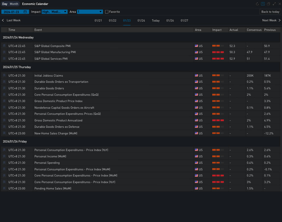Yesterday (24 JAN) U.S. January manufacturing and services PMI preliminary values were higher than expected, respectively, recorded 50.3 and 52.9, while the preliminary composite PMI recorded 52.3, a 7-month high, in addition to the five-year U.S. bond auction results are also not very good, the market risk sentiment has improved, the U.S. bond yields rose slowly, the current two-year / ten-year were 4.376% /4.158%. U.S. stocks, energy and large technology stocks again led the way, the S&P and the Nasdaq rose slightly 0.08% / 0.36%, the Dow closed down 0.26%.
