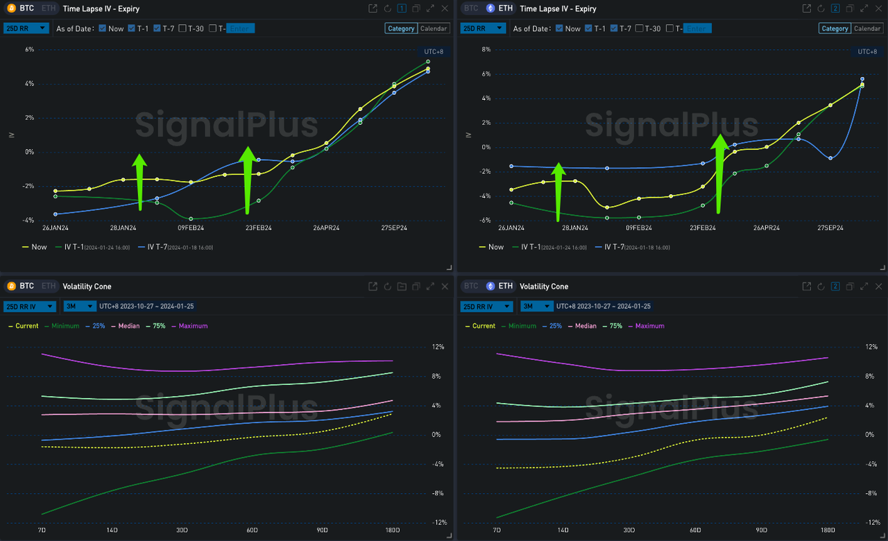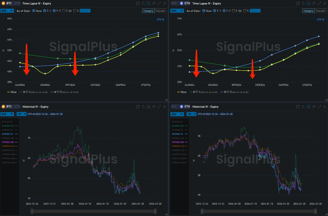 In digital currencies, total outflows from GBTC have almost unilaterally offset total inflows into the other nine ETFs since the ETFs were approved, and the market is still dealing with short-term outflows and a lack of positive incentives, with BTC and ETH oscillating in a narrow range above and below the $40,000/$2,220 mark over the past 24 hours, respectively, with front-end implied volatility steepening, down around 3%, and with the Vol Skew also recovering around 2–3% after prices stabilized. Vol Skew also recovered around 2–3% after prices stabilized, but is still at a near three-month low.