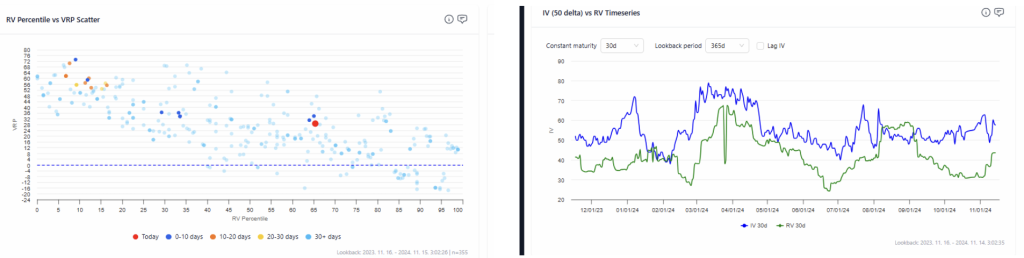 A positive VRP indicates that IV is higher than RV, suggesting that options are overpriced and it is a favorable time to sell. This presents opportunities for negative gamma strategies, always with proper risk management.