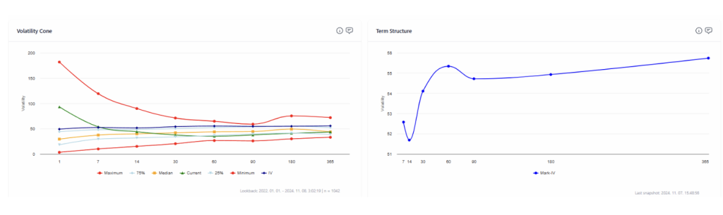 This week, we closed our strategy involving the purchase of a December 2024 BTC Call at $2,677 and the sale of a $60K Put at $2,625. With current prices at $4,475 for the Call and $618 for the Put, the operation yielded a total profit of $3,805 USD, equating to a 25.37% return on our initial margin of $15,000 USD. We successfully capitalized on the pre-election uncertainty and the subsequent spike in options premiums.