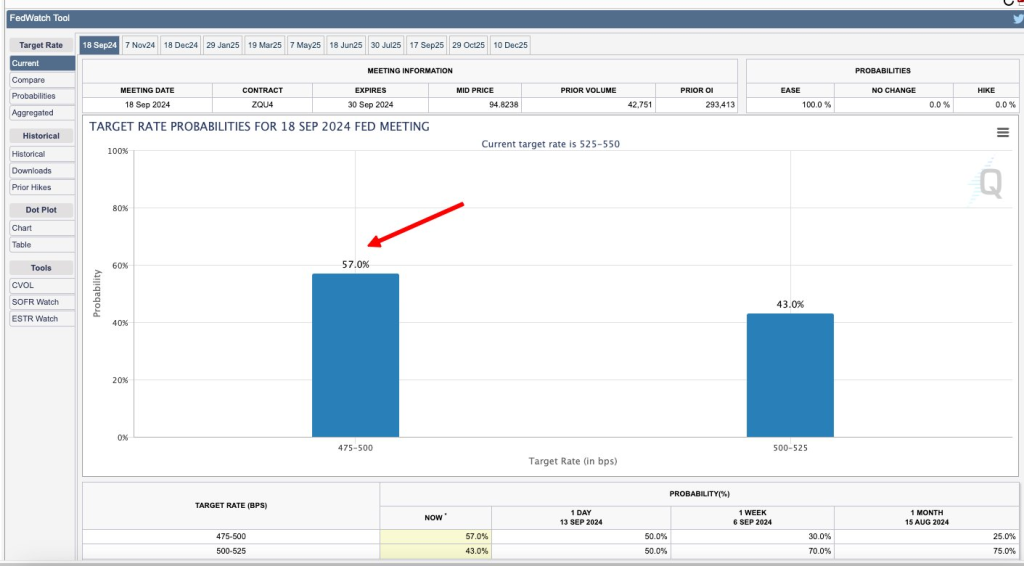1- 本周全球资本市场最为关注的还是降息,至于 25还是50bps上周末就分析过了,今天CME降息50bps已经飙升至59%;