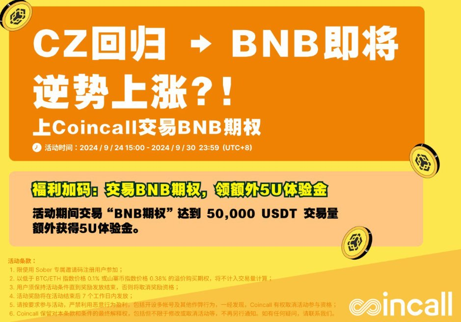 活动提示:近期在Coincall交易除 375U 的体验金,还有额外 BNB 期权交易福利;备注:需要用我的链接注册(见推特置顶)