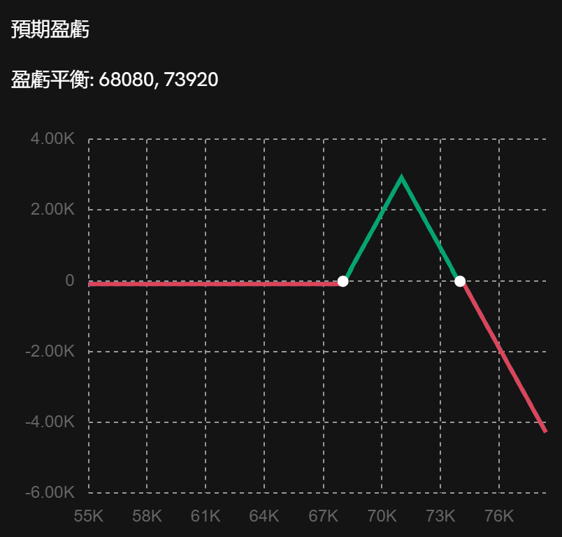 - 如果 BTC 到期价格大幅上涨到 73,920 美元及以上,该策略会存在损失风险;