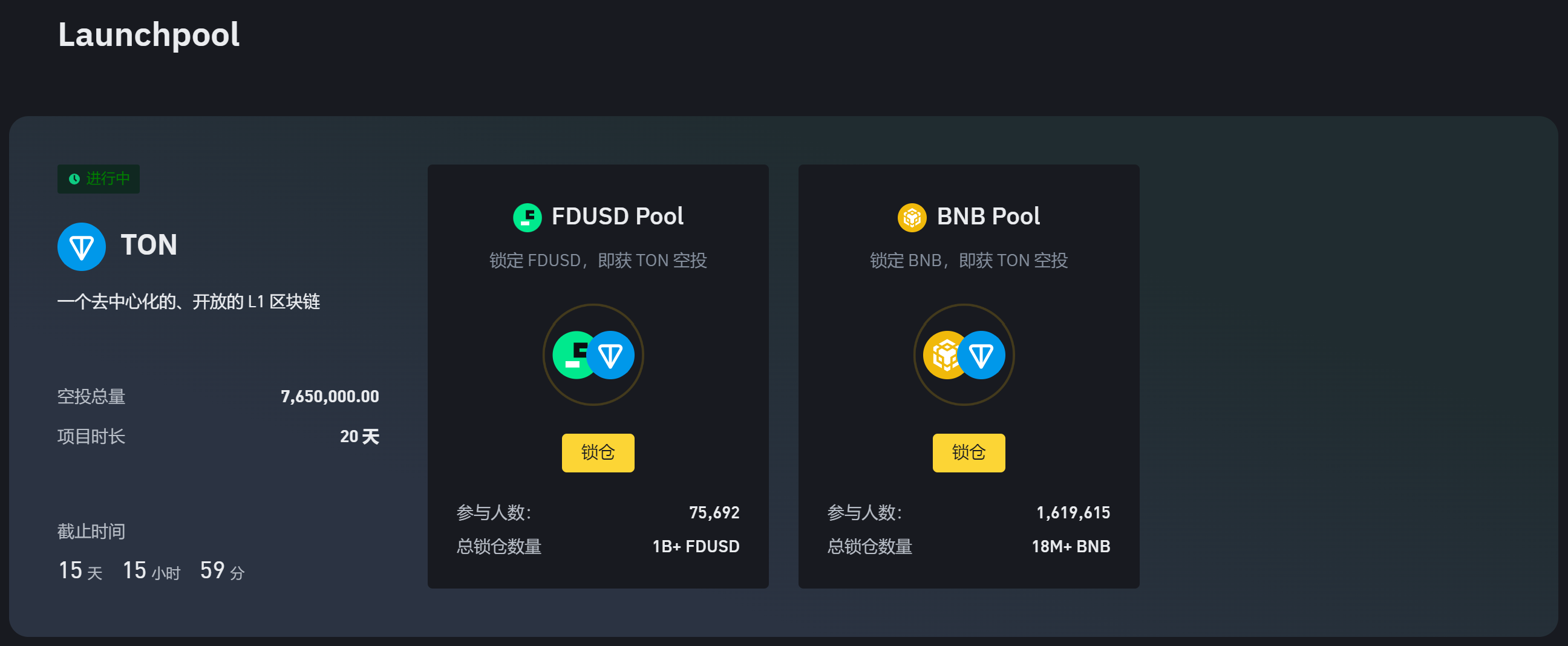 BNB launchpool 近期上线了 TON,目前总锁仓数量达到了 18M+ BNB,参与人数高达 162 万,推动了 BNB 价格稳定上涨,目前接近 $535。