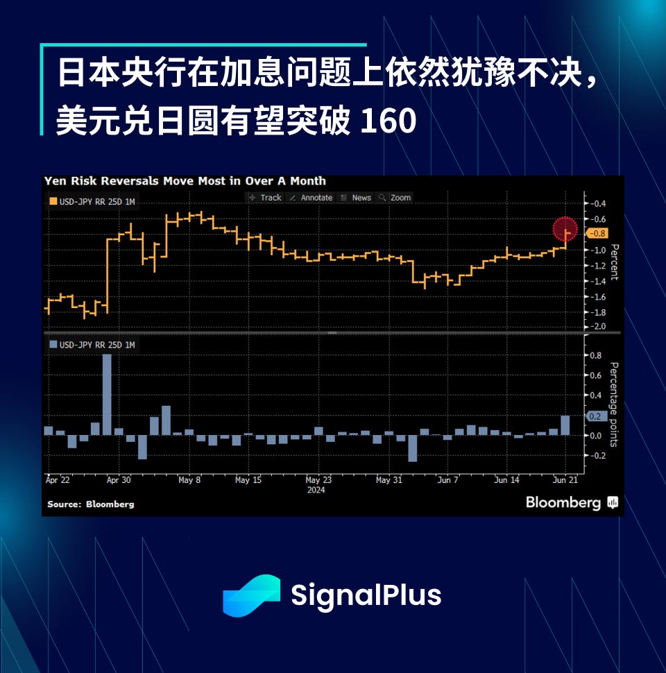 日圆也面临压力,美元兑日圆逼近 160 ,且市场预计日本财政部仅剩下约 2000–3000 亿美元的干预资金,而日本央行官员在加息问题上依然犹豫不决,市场预计在日本央行的下一波干预措施前,美元兑日圆将往 165 迈进。