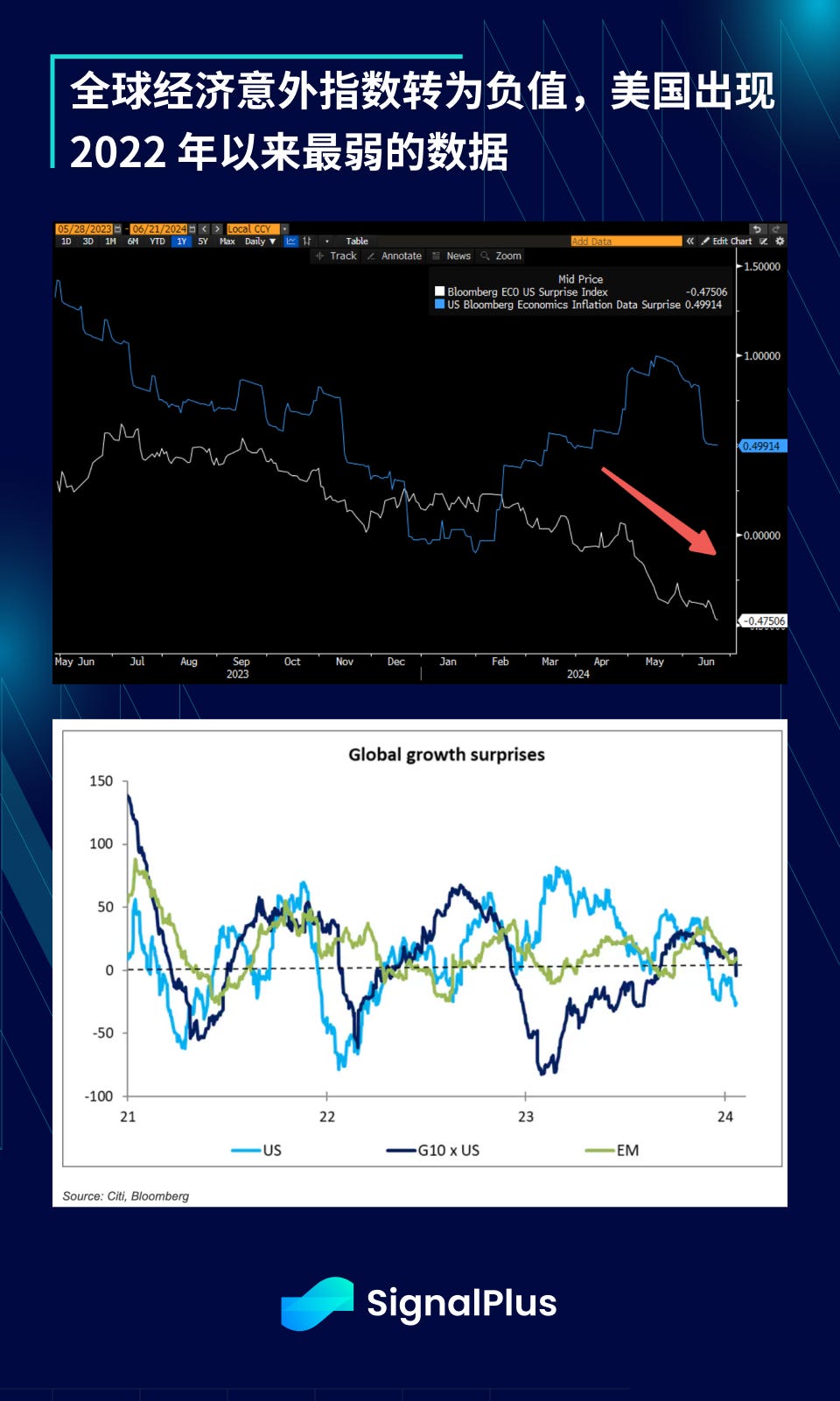 在经济方面,我们看到更多迹象显示美国经济终于放缓,经济增长意外指标也降至 2022 年以来的最低水平,世界其他地区也与美国一样陷入负值领域。