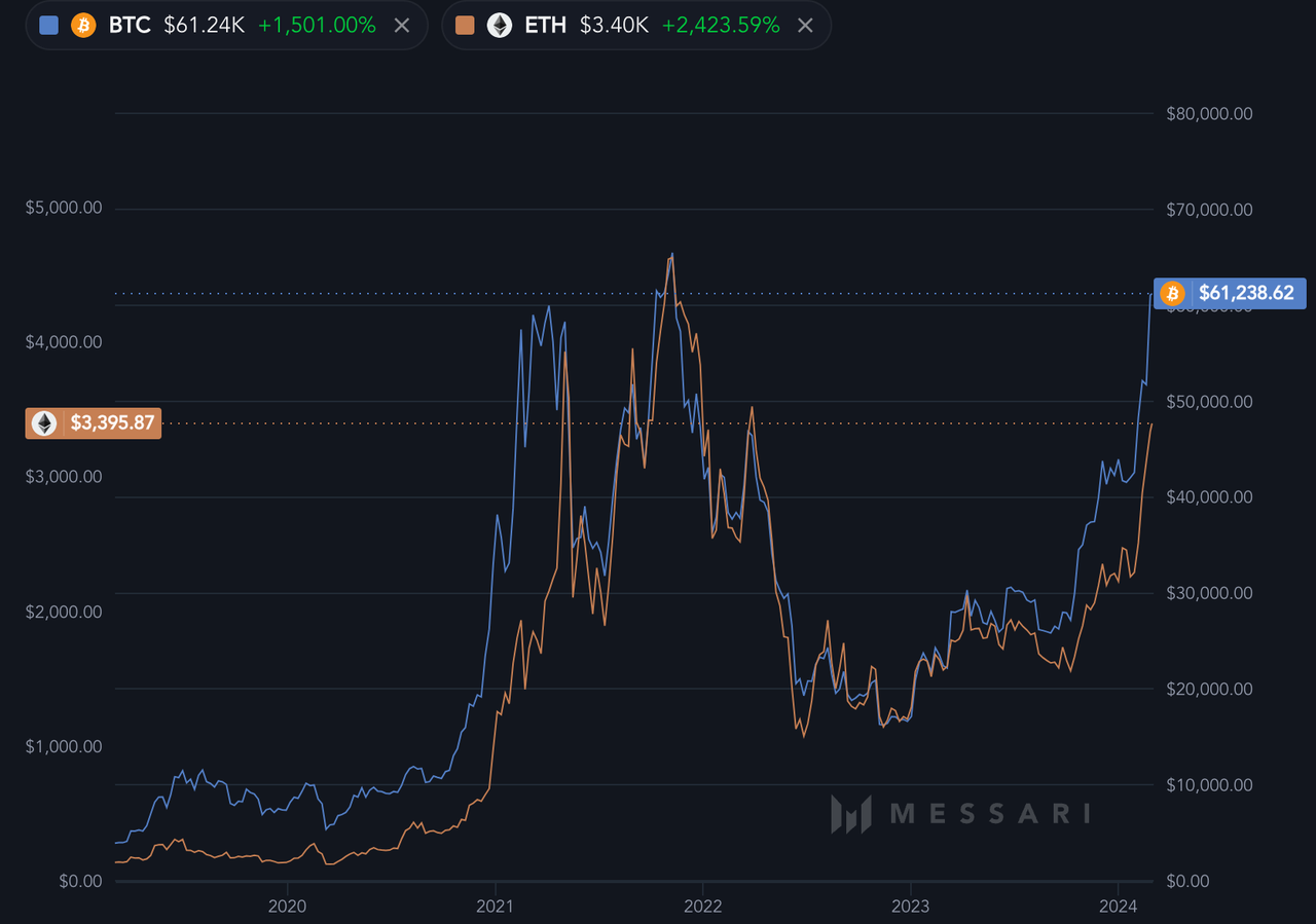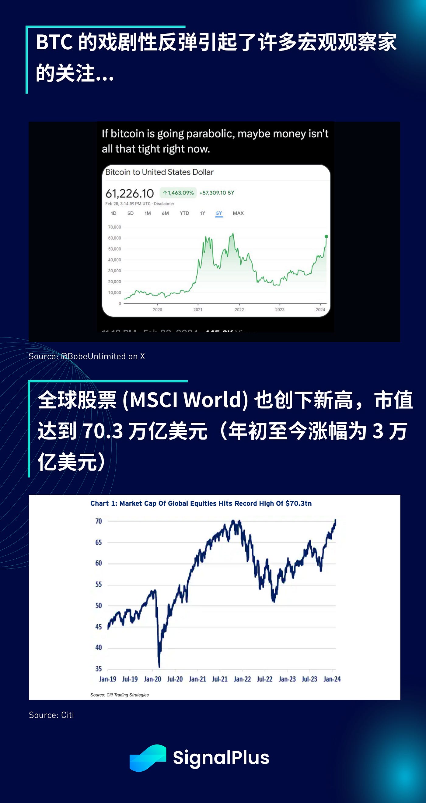 正當人們開始擔心當前的風險反彈可能會泡沫化時,Bitcoin 在24 小時內從5.7 萬美元急升至6.4 萬美元左右, 2 月預計將成為BTC 自2020 年12 月以來表現最佳的月份,漲幅 超過40% ,而隨著FOMO 熱潮蔓延,現貨ETF 的交易量也激增至76.9 億美元,遠遠超過首個交易日46.6 億美元的紀錄。