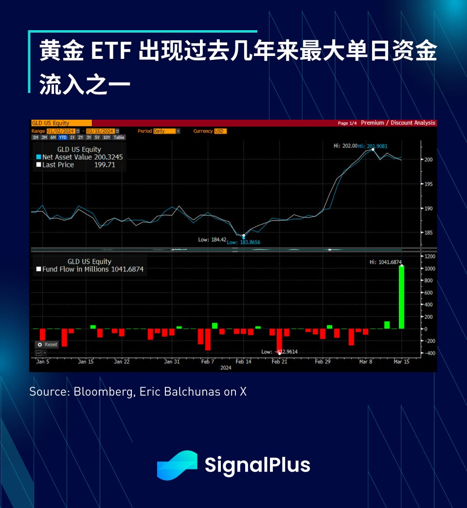 黃金 ETF 也不甘落後,出現過去幾年來最大單日資金流入之一,美聯儲最新的「鴿派確認」應該也會為貴金屬在短期內走高提供進一步的推動力。