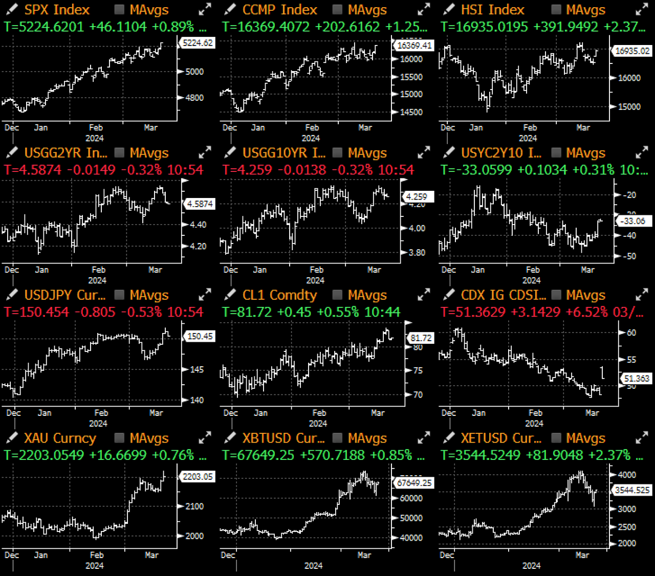 市場很快就注意到,儘管核心PCE(從2.4% 上升至2.6% )、實際GDP 成長(從1.4% 上升至2.1% )和失業率(從4.0% 上升至4.1% ,且官方聲明中去除了 「和緩」的措辭)均顯著提升,但點陣圖中位數卻沒有變化(2024 年聯邦基金利率4.6% ),雖然聯準會也將2025 年最終聯邦基金利率從3.6% 上調至3.9% ,但聯準會 實際上已經幾乎“亮出底牌”,此舉也難以阻止風險資產的上漲。