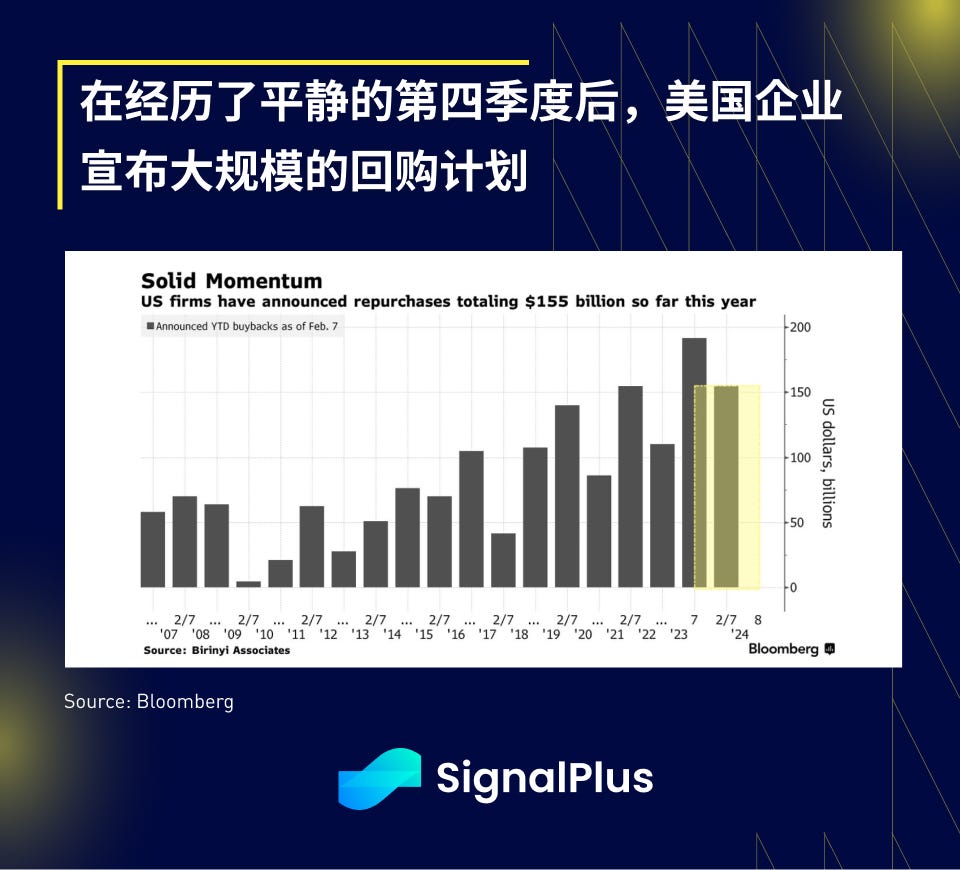 股市也收復了前一日跌幅的60–70% ,主要受企業股票回購計畫的激勵,最近宣布回購的公司包括Las Vegas Sands、Ford、GM、RTX、Airbnb,當然還有Uber 和Meta; Uber 在首次實現全年盈利後,宣布70 億美元的股票回購計劃,而Meta 早些時候宣布增加500 億美元股票回購,並將首度發放股息。