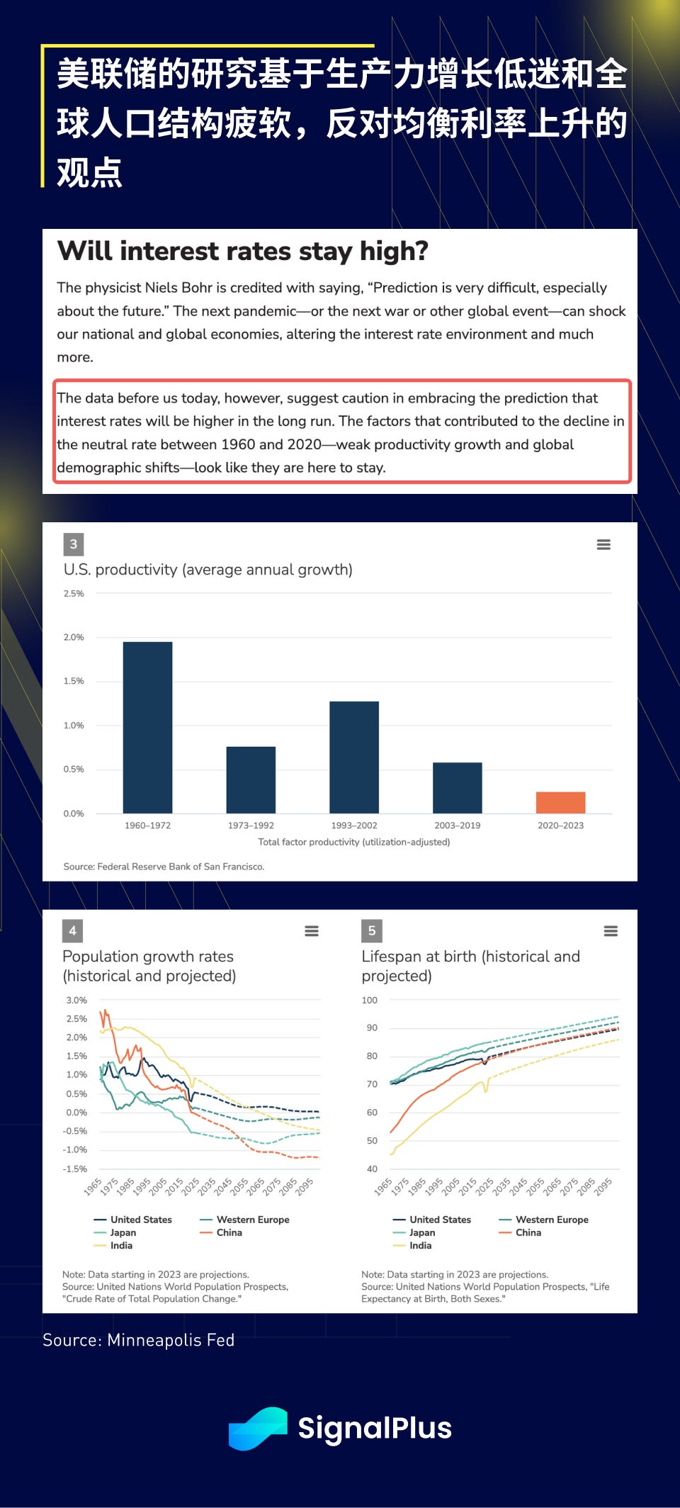 另一方面,Minneapolis 聯邦儲備銀行的一份工作文件深入探討了頗具爭議的“R-star”問題,即學術界所說的長期均衡利率,其結論指出,由於美國生產力增長持續低迷,中性利率可能會 受到限制,這種想法也融入了聯準會對貨幣政策的長期預測。