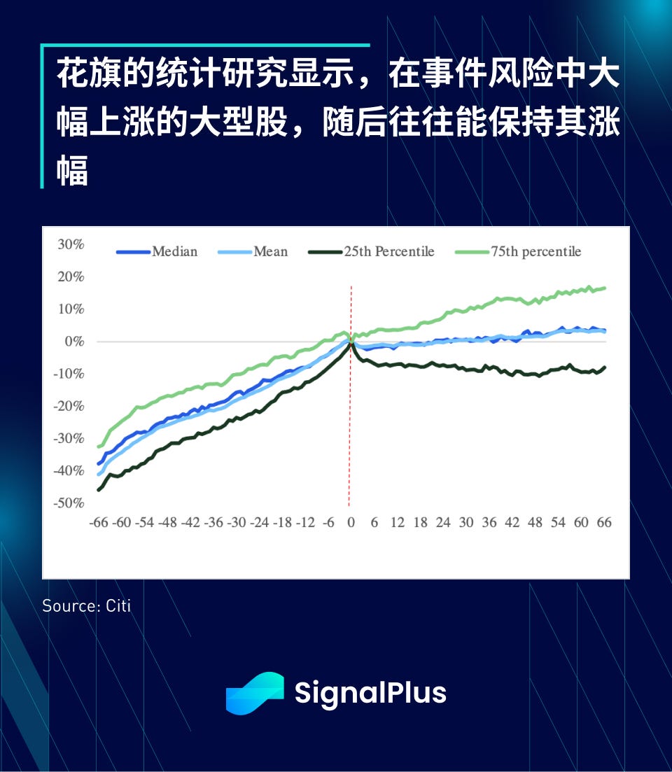 此外,一項統計研究表明,目前的AI「泡沫」仍處於早期階段,還有更多上升空間;研究中分析了過去30 年中超過1000 只在3 個月內上漲35% 以上的大型股, 研究結果顯示,在下一季的回報率仍保持小幅正值,並且沒有任何顯著的回調,如果歷史在短期內重演,這對當前的風險反彈來說是個好兆頭。