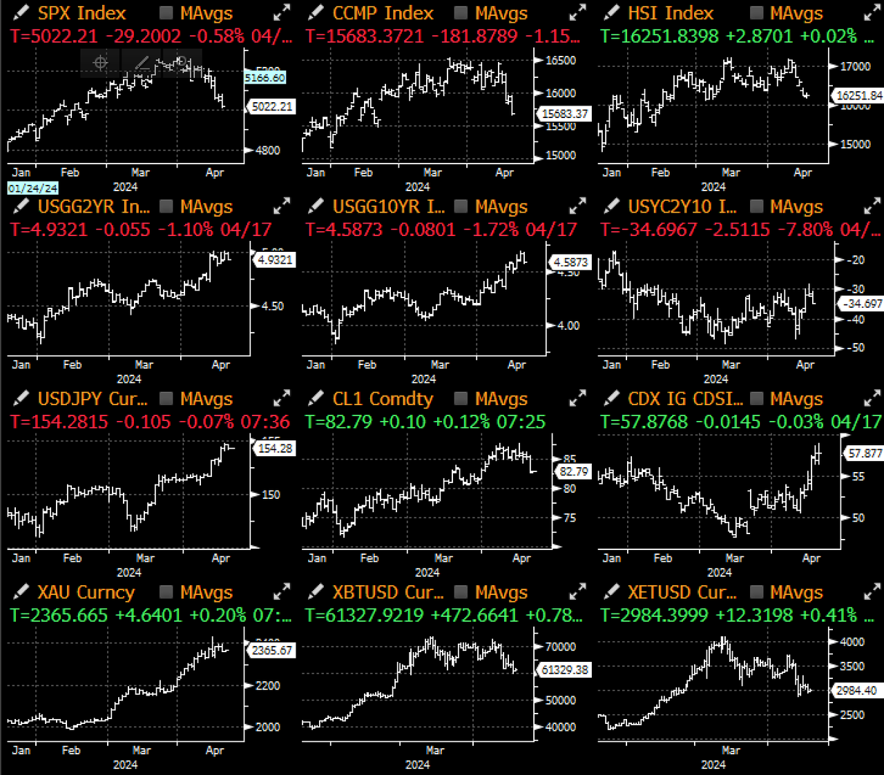 昨天交易員們仍處於控制虧損模式,市場風險情緒再次降溫。 在 Powell 對今年降息前景潑冷水的一天后,美債價格反彈,而 S&P 500 指數連續四天下跌,這是自 1 月以來最長的跌勢。 此波下跌無一倖免,恐懼情緒正在取代 FOMO 情緒,黃金、原油和加密貨幣價格均處於劣勢。