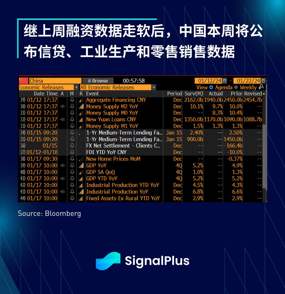 美股和債市今天將因Martin Luther King 紀念日休市,市場焦點可能集中在台灣總統選舉結果出爐後新興市場的情況,以及本週一系列中國經濟數據,包括信貸、工業生產和零售銷售數據等, 同時市場也會關注中國人民銀行的MLF 定價,特別是在中國整體融資和貸款數據走軟之後。