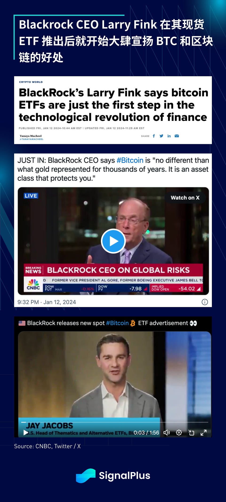 另一方面,過去3–5 年大部分都在貶低加密貨幣的Blackrock CEO Larry Fink,在最新的電視訪談和聲明裡對Bitcoin 大唱讚歌,有點令人毛骨悚然,他180 度大轉彎的評論包括 :