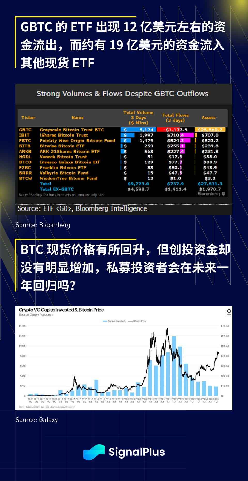 在加密货币方面,根据 Bloomberg 的估计,GBTC 在 3 天内流出约 12 亿美元,而其他 9 只现货 ETF 则流入 19 亿美元,净流入估计为 8 亿美元;新推出的 Bitcoin 现货 ETF 首 3 天总交易量突破 97 亿美元,其中 GBTC 占超过 52% 。过去一周现货价格一直稳定维持在 4.25 万美元左右,资金的流入可能需要一些时间,短期价格走势可能取决于整体风险情绪和市场对于美联储政策的重新定价。