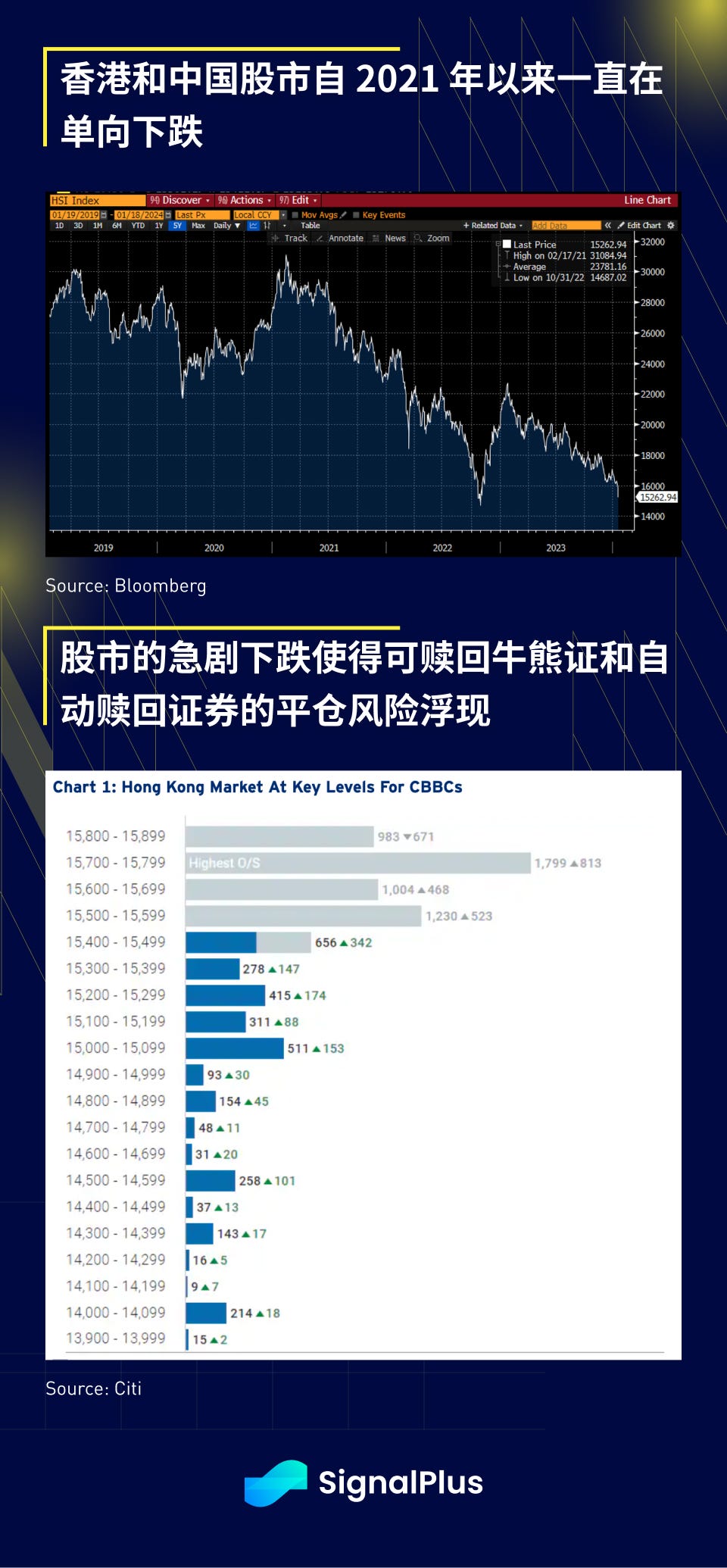 避險情緒不僅限於美國,中國/香港股市在亞洲開盤時也遭遇了類似的血洗,對中國經濟增長和政策的失望導致恆生指數下跌近4% ,中期缺乏明顯的激勵因素極大地壓抑了市場情緒 ,技術面看起來日益惡化,且券商警告稱自動贖回證券和可贖回牛熊證的平倉可能會導致恆生指數進一步下行;此外,越來越多的本地報告顯示香港出現重大的房地產損失 和銀行貸款減值,本地監管機構可能很快就會被迫採取流動性幹預行動,以阻止這種情況惡化下去。
